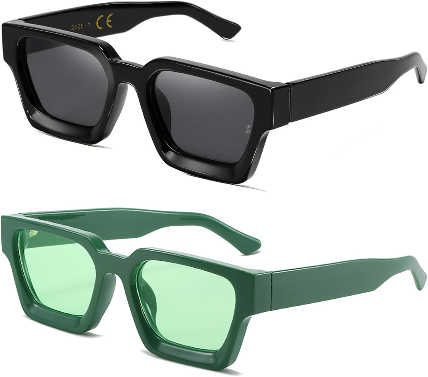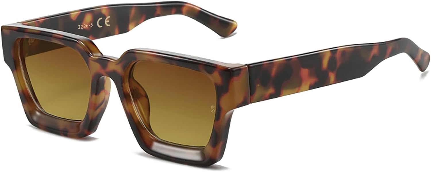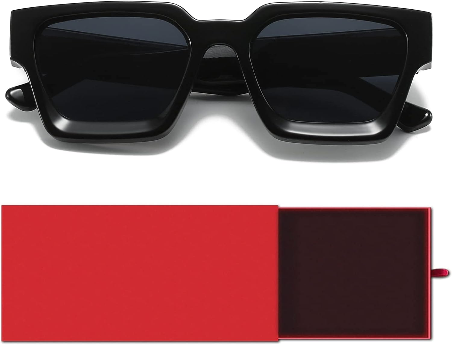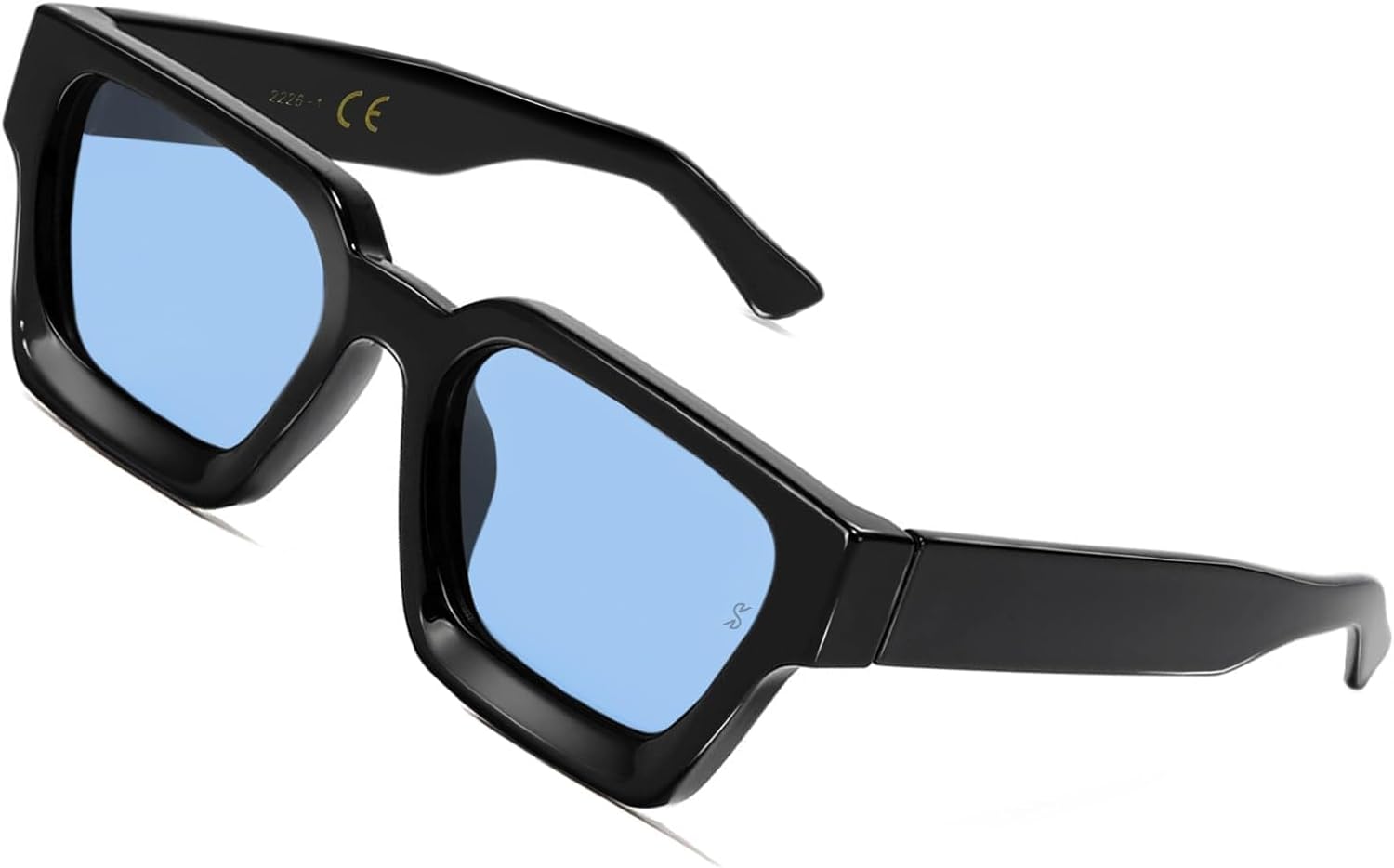 SHEEN KELLY Retro Rectangular Sunglasses Men Women Polarization Trendy Classic Thick Square Black 90s Sunglasses