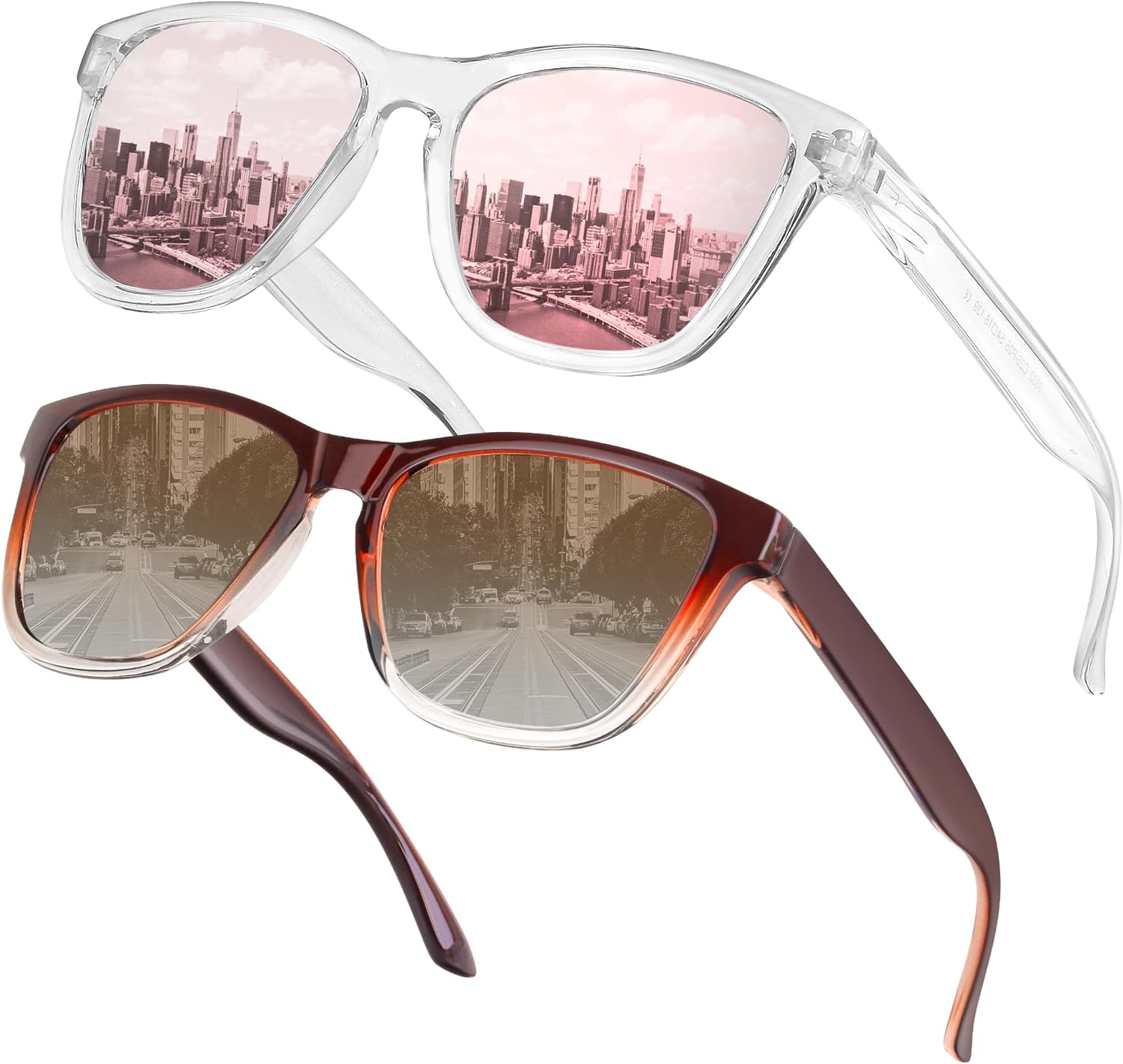 Ulknyss Polarised Sunglasses Womens Retro Square Sunglasses with UV Protection 2 Pack Classic Shades for Women Ladies Fashion Driving Travel