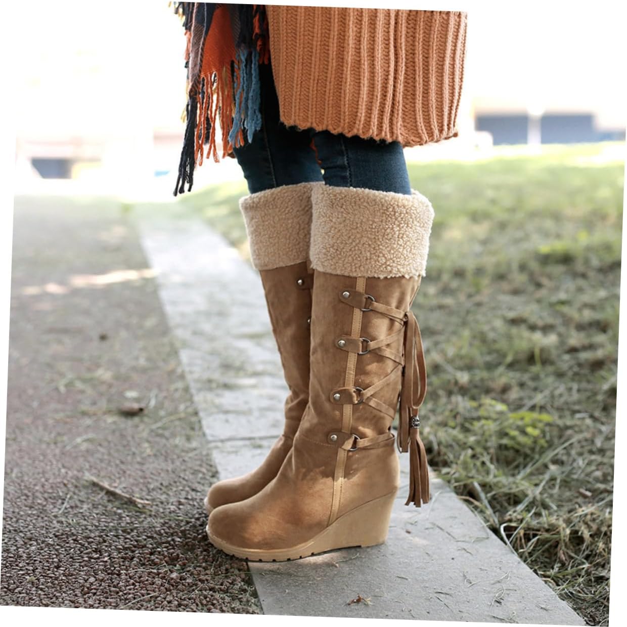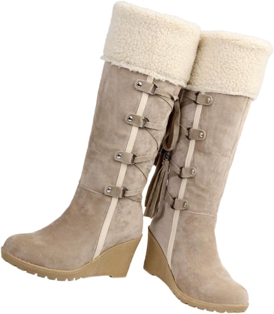 - Womens thigh high-- womens knee high riding boots plush winter snow boots tall shaft boot knee high tassel boots ladies.