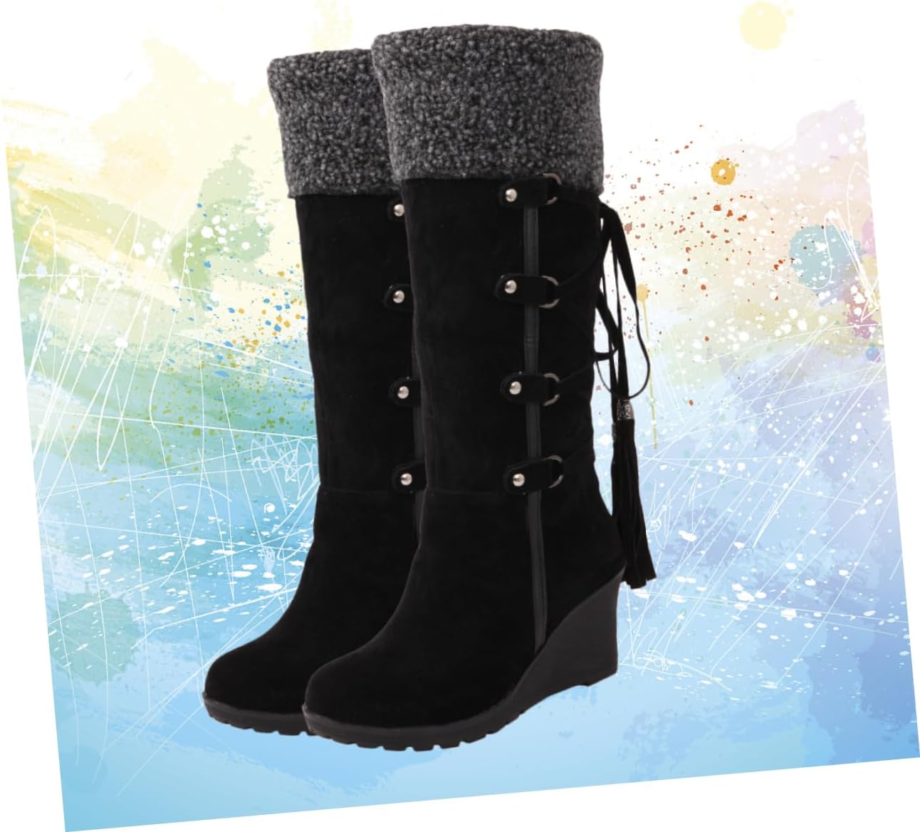 Package Include 2 x pair of boots Characteristics - Size 39: 24.5cm(Length); 23cm(Foot Circle) zapatilla de mujer. - Size 36: 23cm(Length); 21.5cm(Foot Circle) girls boots. - Material: Rubber fringe boots for women. - Size 42: 26cm(Length); 24.5cm(Foot Circle) womens slippers. - Size 41: 25.5cm(Length); 24cm(Foot Circle) tassel boots. - Color: Black riding boots heel. - Size 37: 23.5cm(Length); 22cm(Foot Circle) knee high boots wide calf. - Size 40: 25cm(Length); 23.5cm(Foot Circle) wedge knee boots. - Size 38: 24cm(Length); 22.5cm(Foot Circle) Women Boots. - Really help to add you charm and will make you eye-catching in crowd boots. womens booties - Made of material, comfortable, breathable and non-slip Women Winter Boots. - Perfect gift for your friends and families round toe boots women. - With tassel design, attractive and stylish short boots for. - Women high boots design keeps you fashion and warm high boots for women.Goods Descriptiongirls riding boots Non-skid soles as well as classic and fashion style, which is suitable for autumn and winter wearing.womens house slippers This is a pair of woman shoes which is made of materials for and durable wearing.womens booties and lightweight, they can keep feet warm and comfortable all-day long