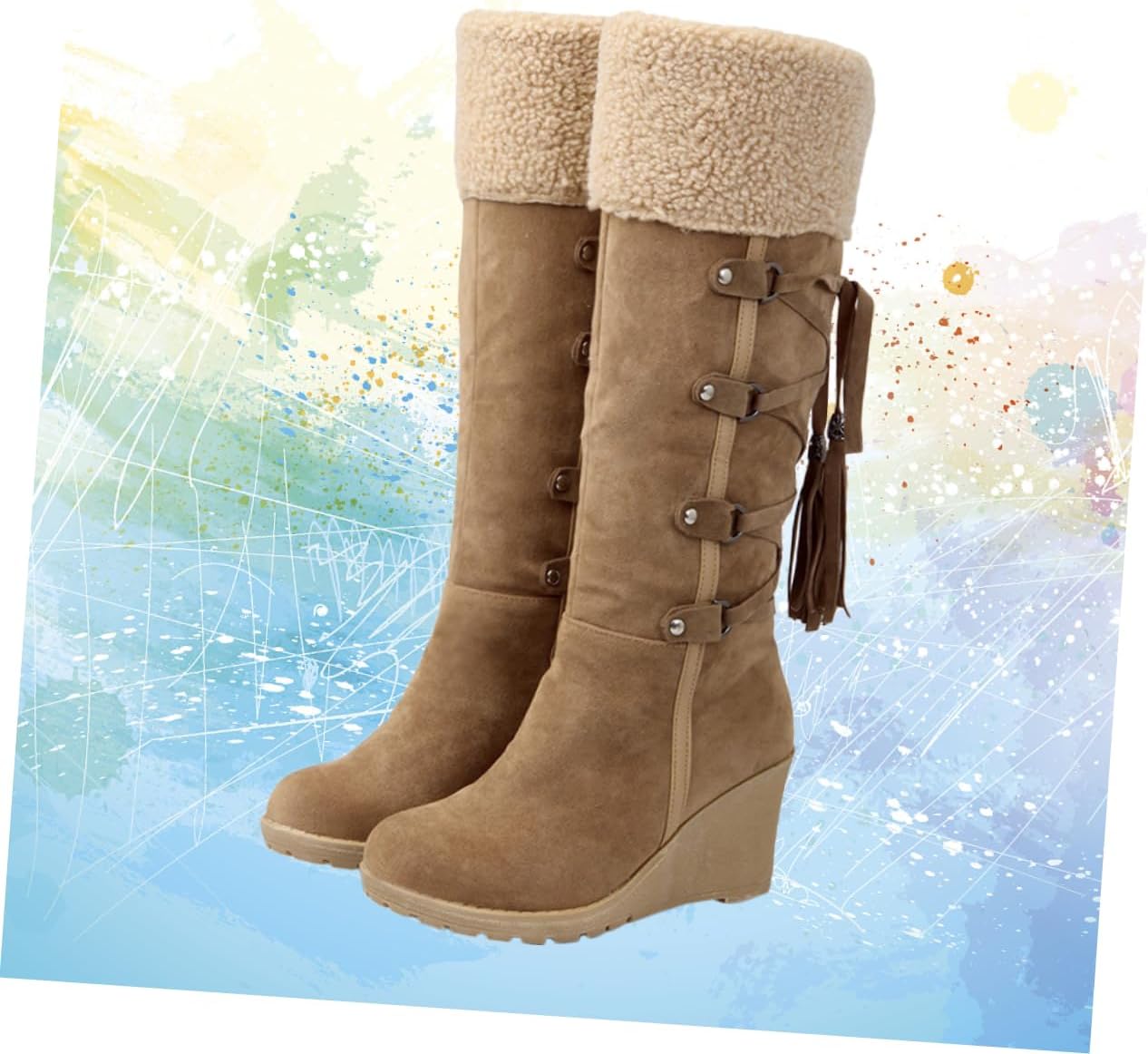 SOIMISS 2pcs Over-The-Knee Boots Toe fur lined boots women Womens Thigh High Boots wedge knee boots wedge snow boots winter wedge boots riding boots women calf sleeve Miss tassel