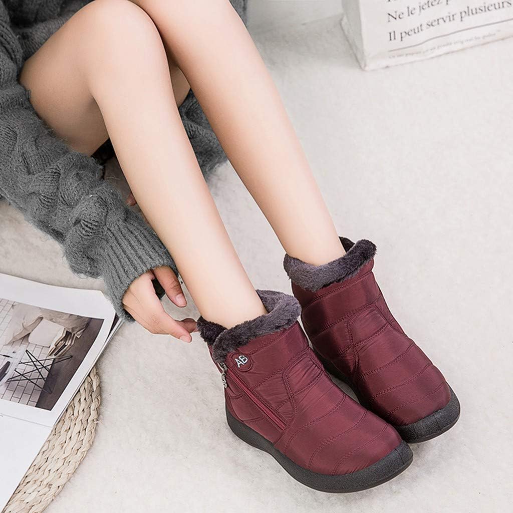 Starryflashing_Women Boots Women Snow Boots Winter, Ladies Solid Ankle Short Boots Waterproof Footwear Warm Shoes