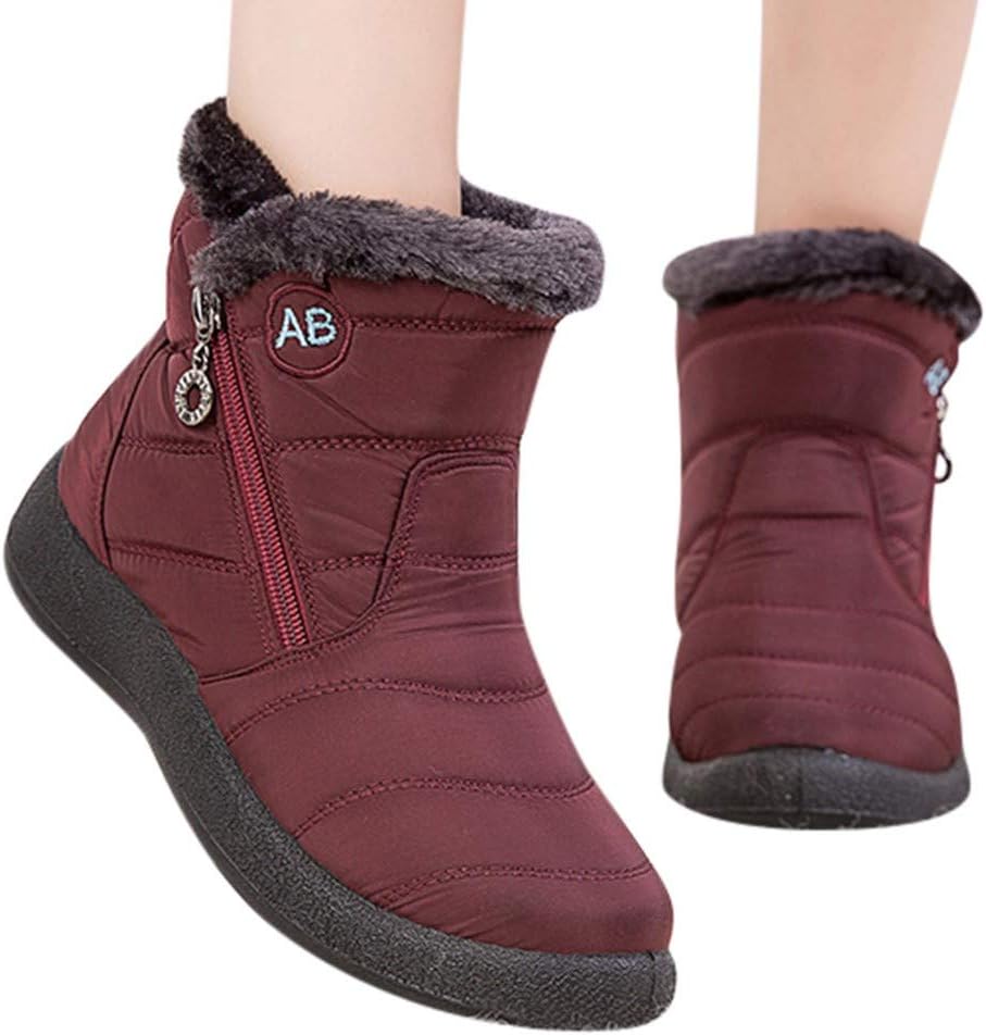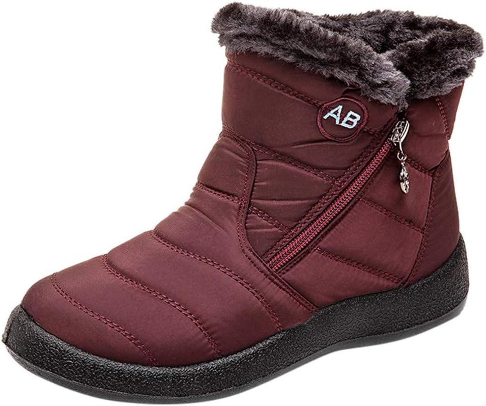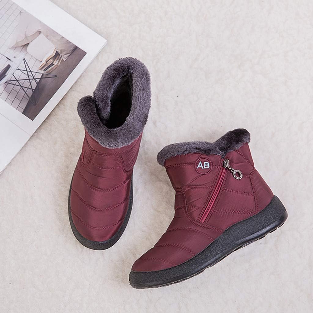Women Snow Boots Winter, Ladies Solid Ankle Short Boots Waterproof Footwear Warm Shoes, 43 EU, Wine