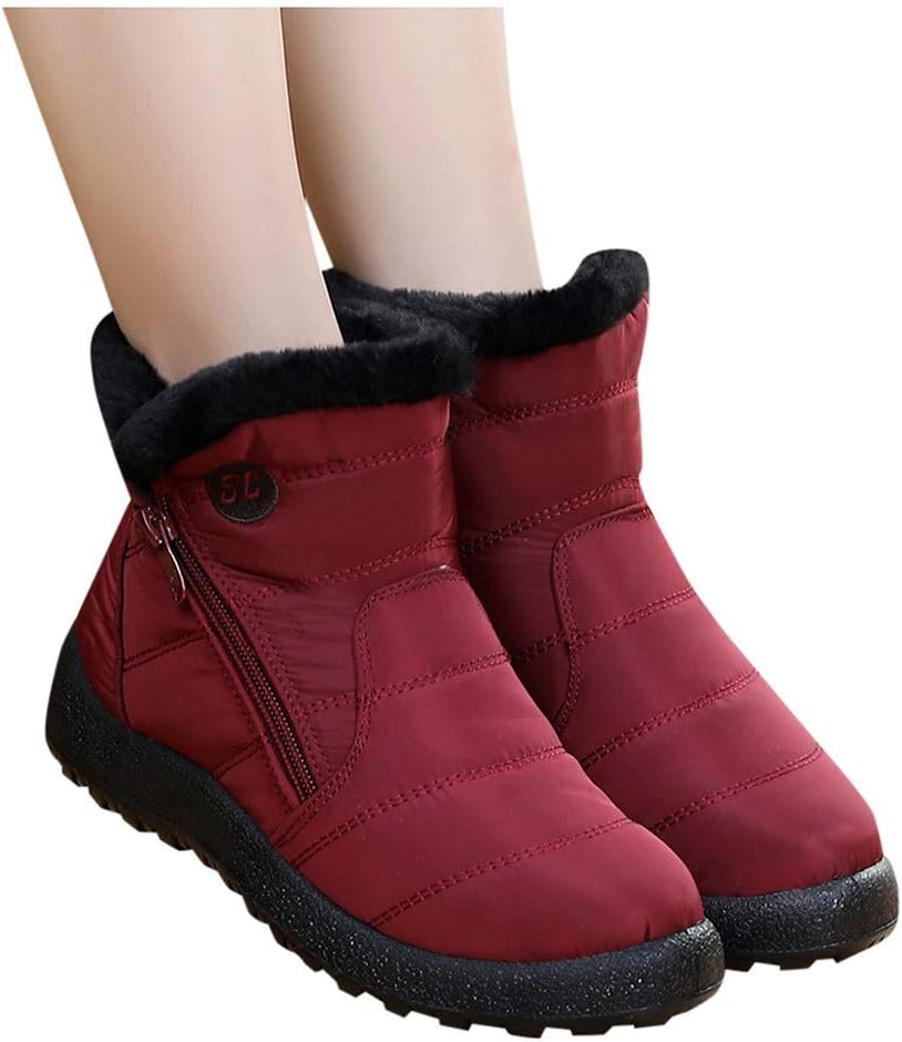 Women Solid Snow Boots Winter Ankle ❀ Ladies Flat Bottom Fashion Zipper Short Bootie Waterproof Footwear Warm Shoes