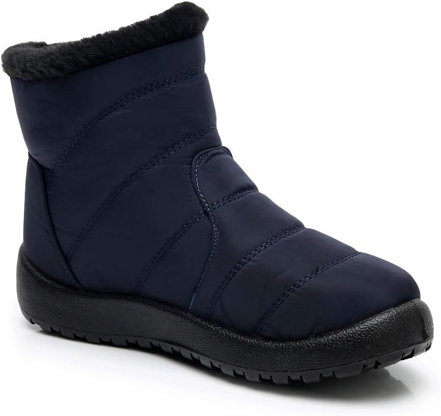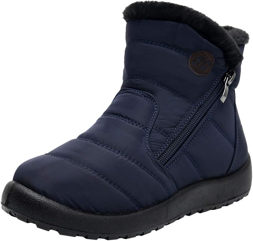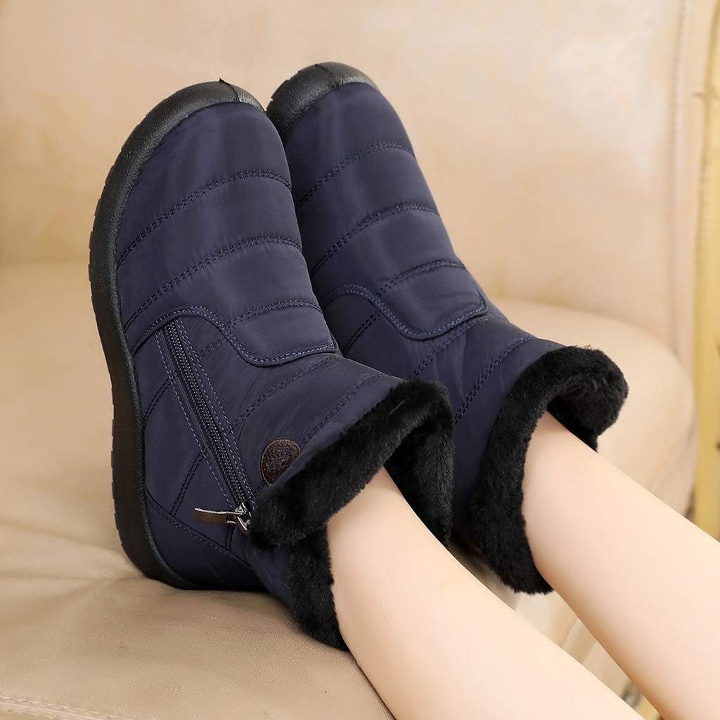 Women Solid Snow Boots Winter Ankle Ladies Flat Bottom Fashion Zipper Short Bootie Waterproof Footwear Warm Shoes, 39 EU, Blue
