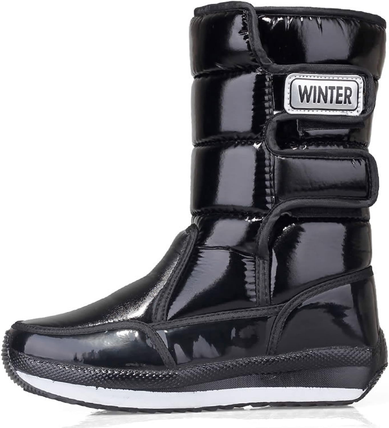 Women's Snow Boots Ladies Winter Warm Cotton Boots Fashion Shiny PU Leather Waterproof Snow Boots Outdoor Ski Boots Casual Everyday Walking Boots,Black,36EU