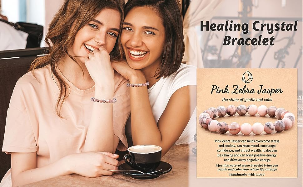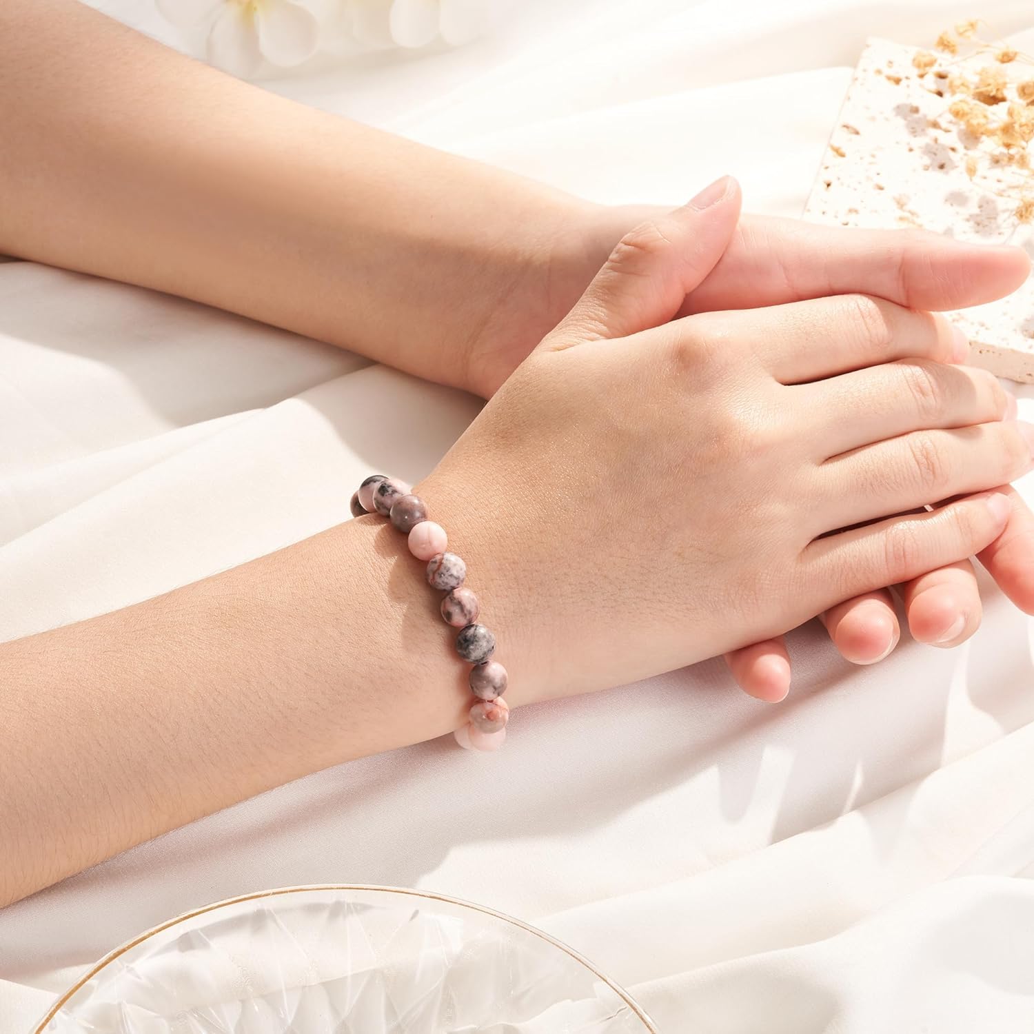 • ❤【Natural Crystal Stone Bracelet】Bracelet woven from pink zebra jasper. Pink zebra jasper can calm and relax, bring positive energy, drive away negative energy, and heal your soul.