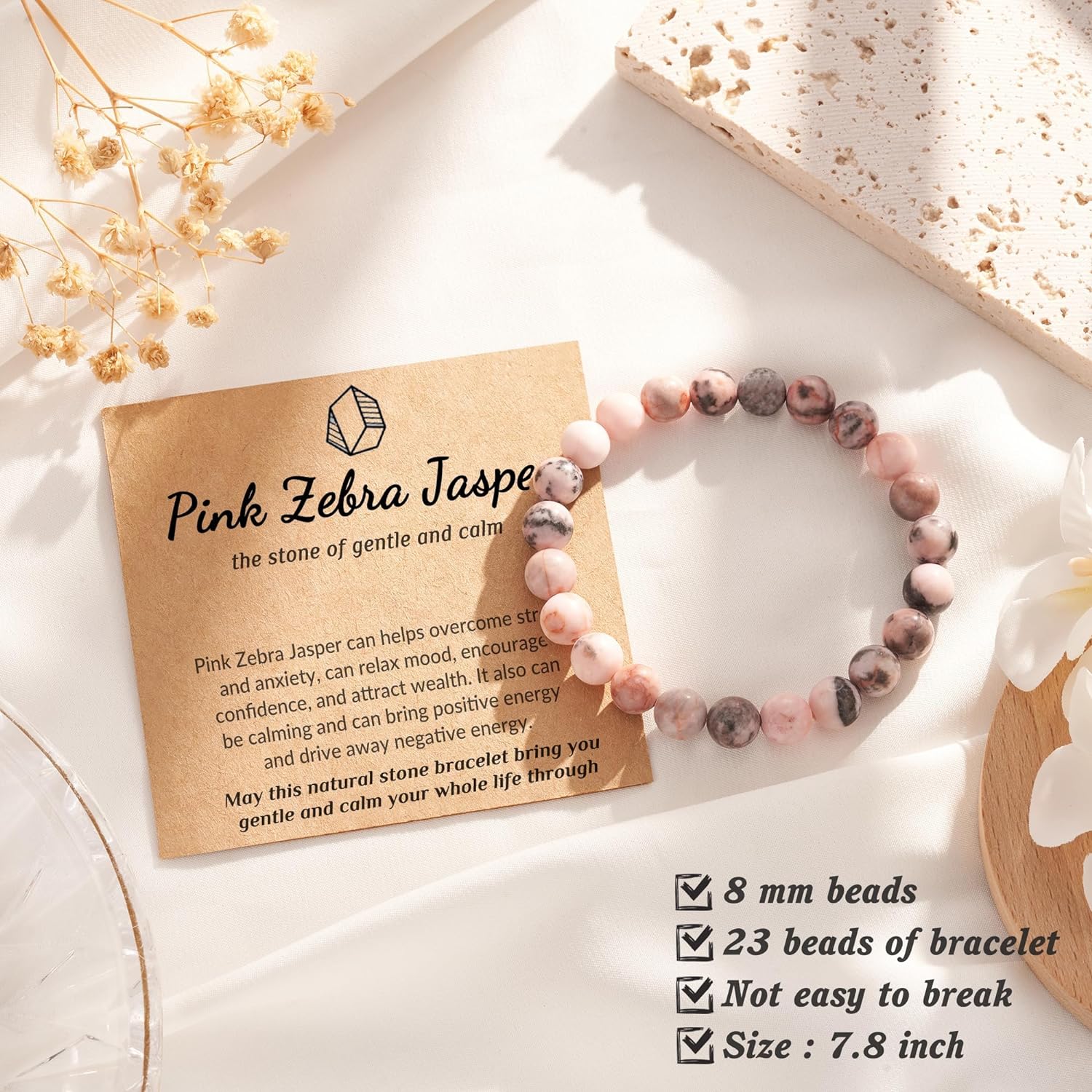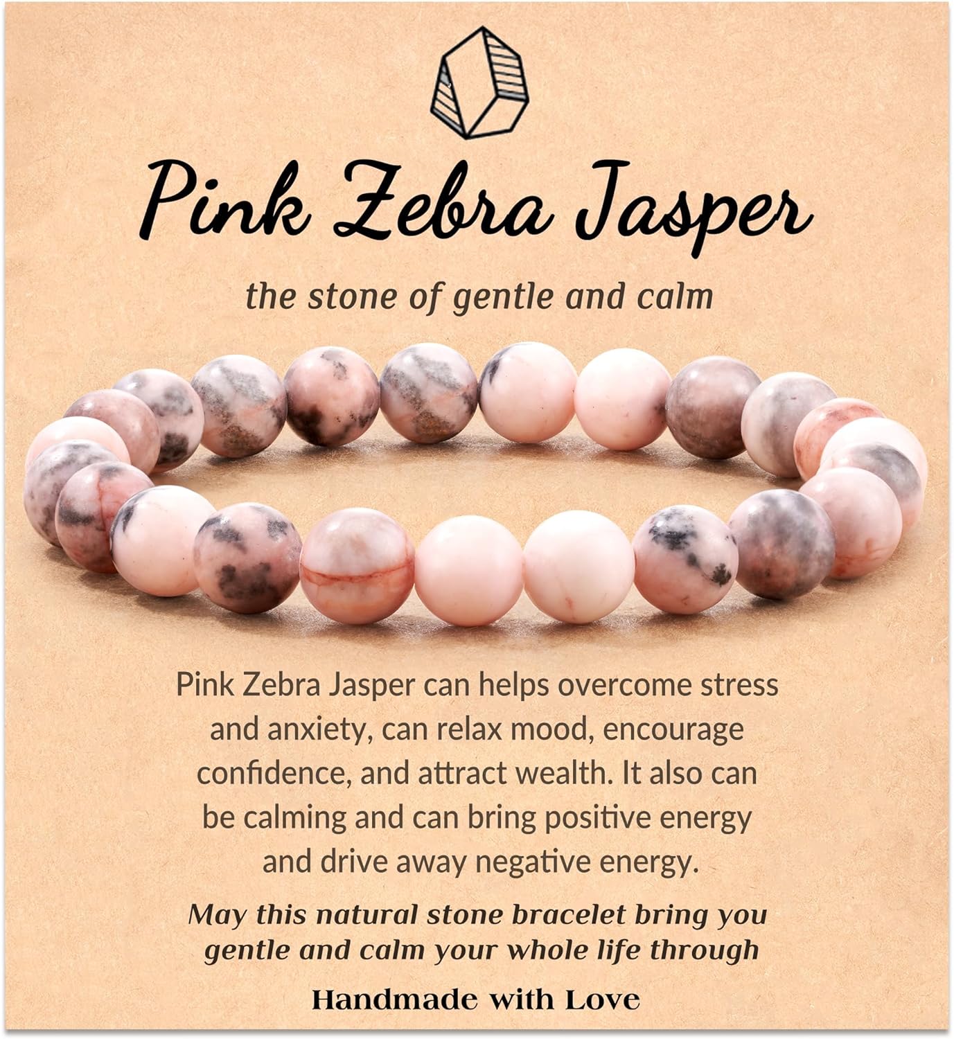 • ❤【Perfect Healing Bracelet】Pink Zebra Jasper is a powerful calming and soothing gemstone that can bring balance and optimism, it also helps to turn dreams into reality.