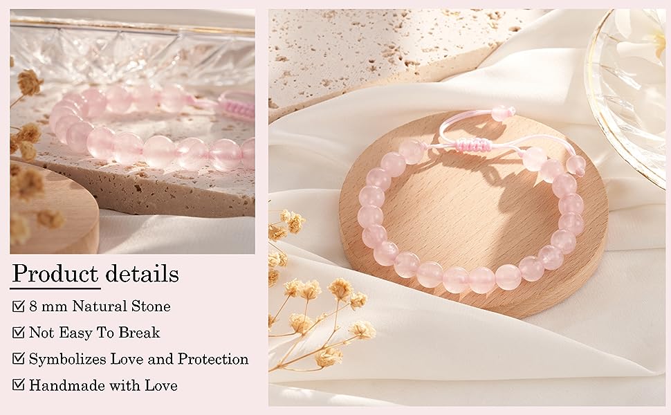 • ❤【High Quality】The bead bracelet is handmade from natural pink zebra jasper. Equipped with transparent high elastic rope, waterproof, durable and comfortable.