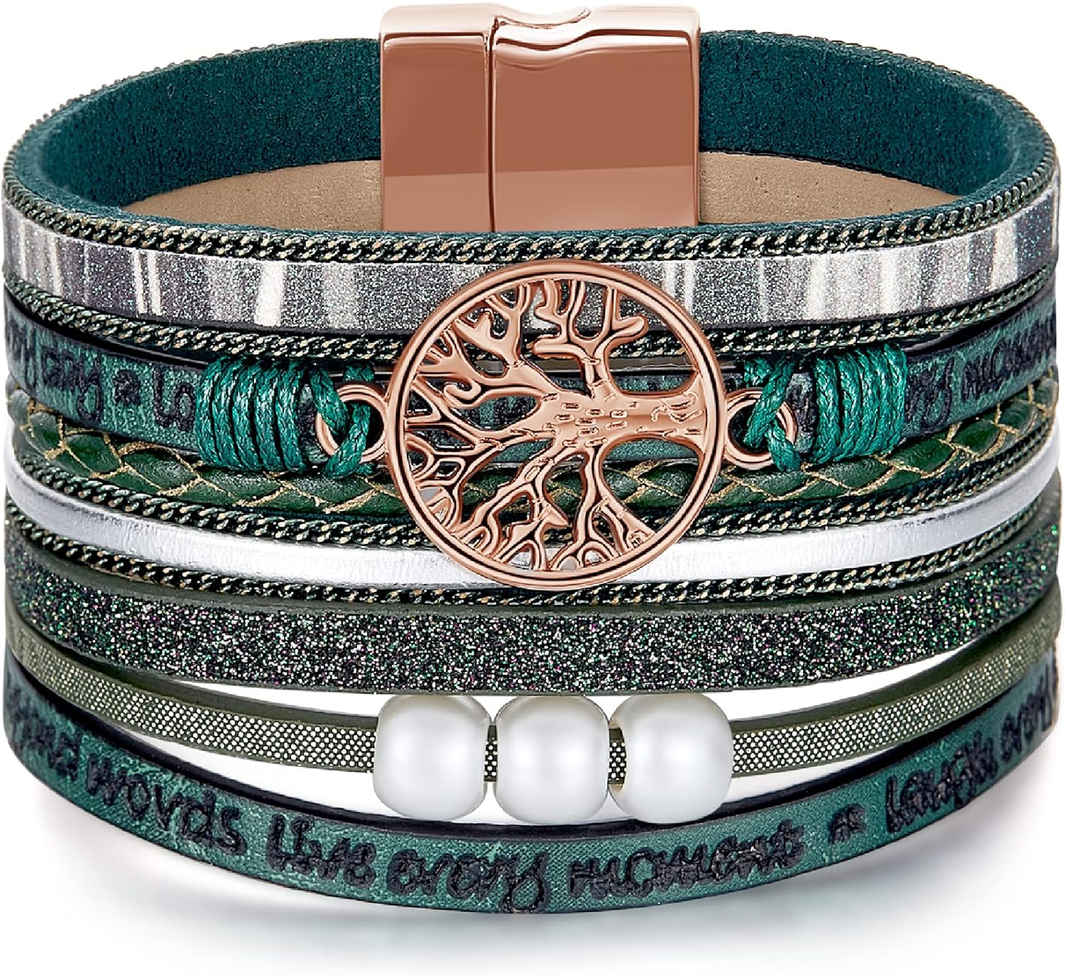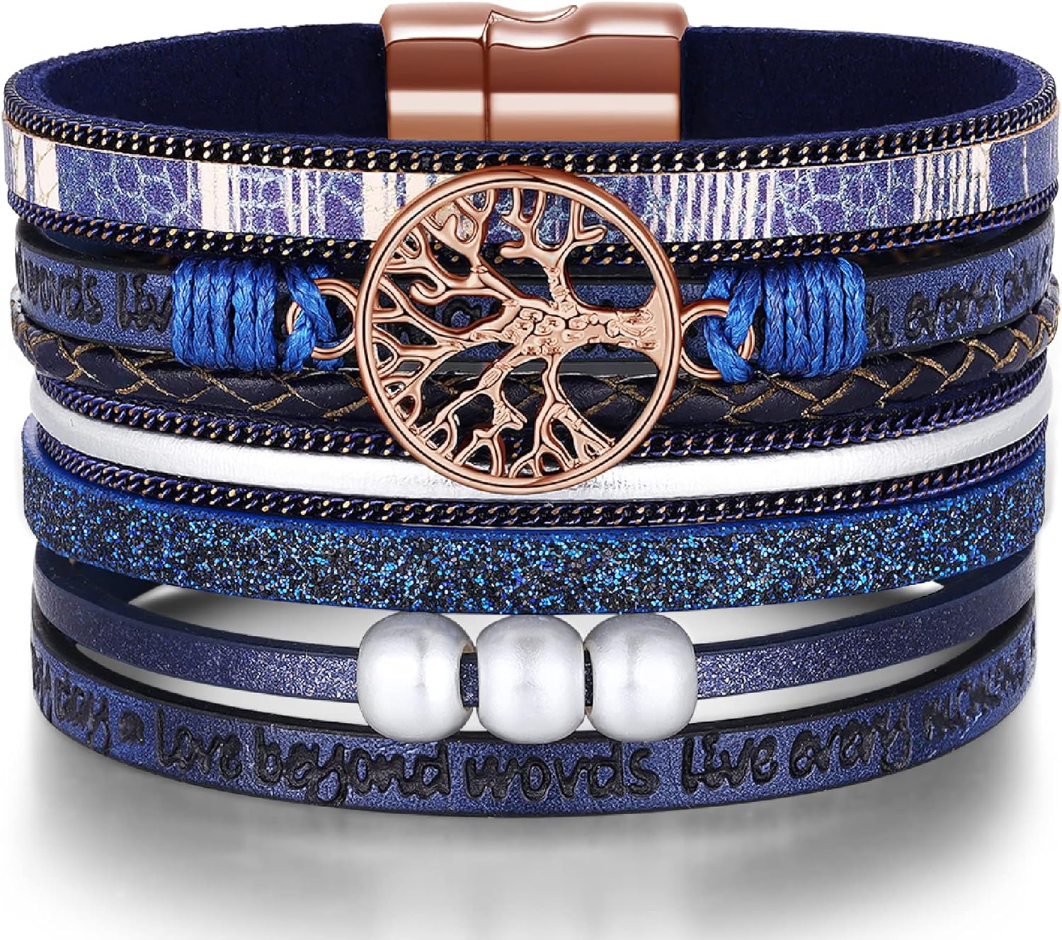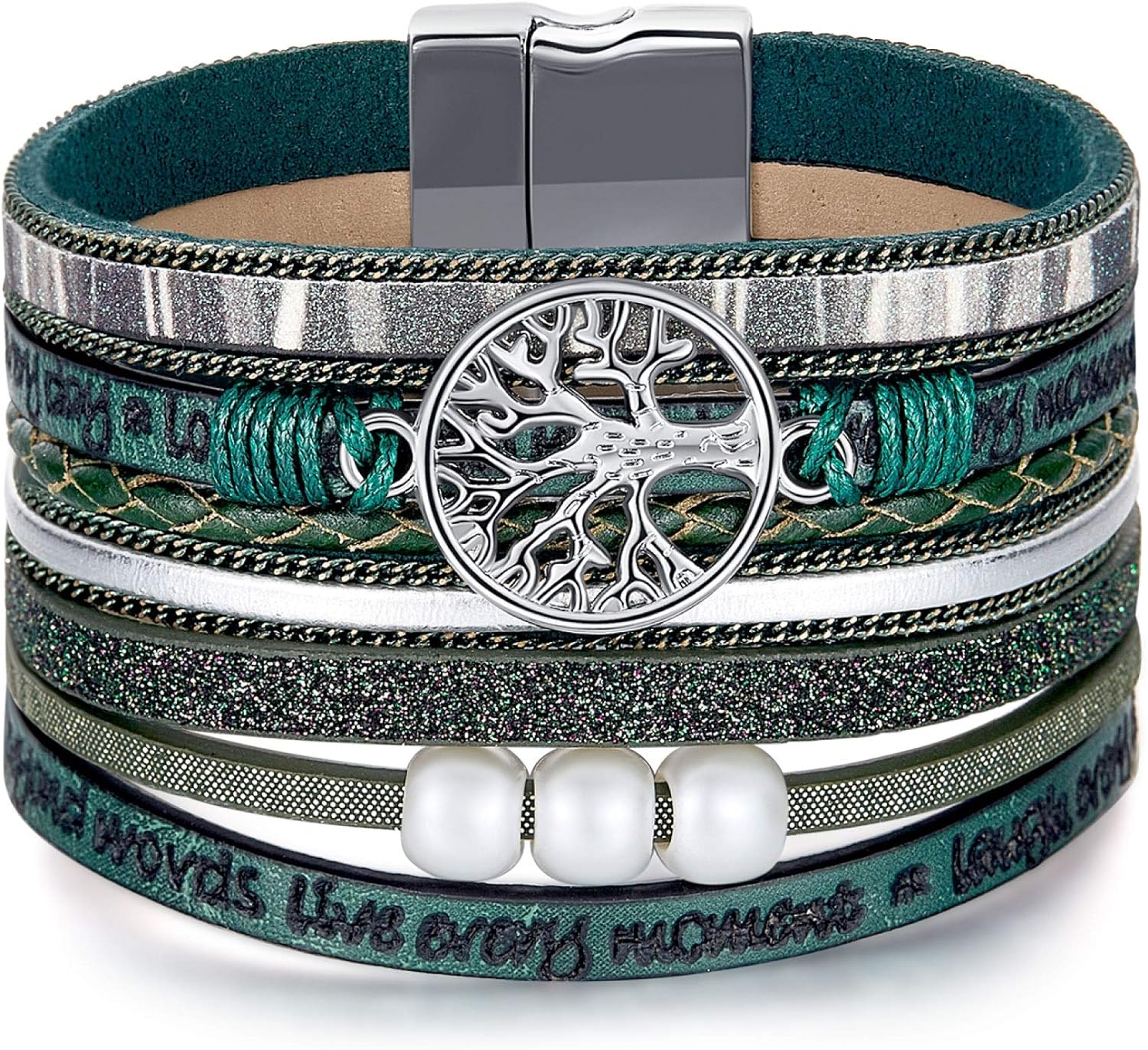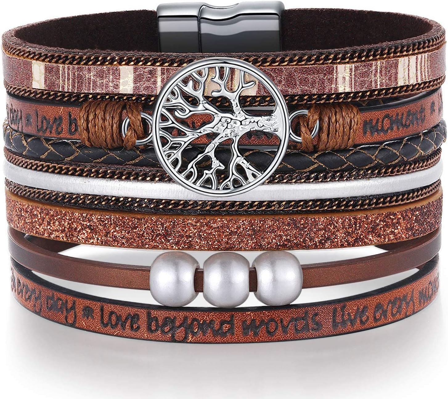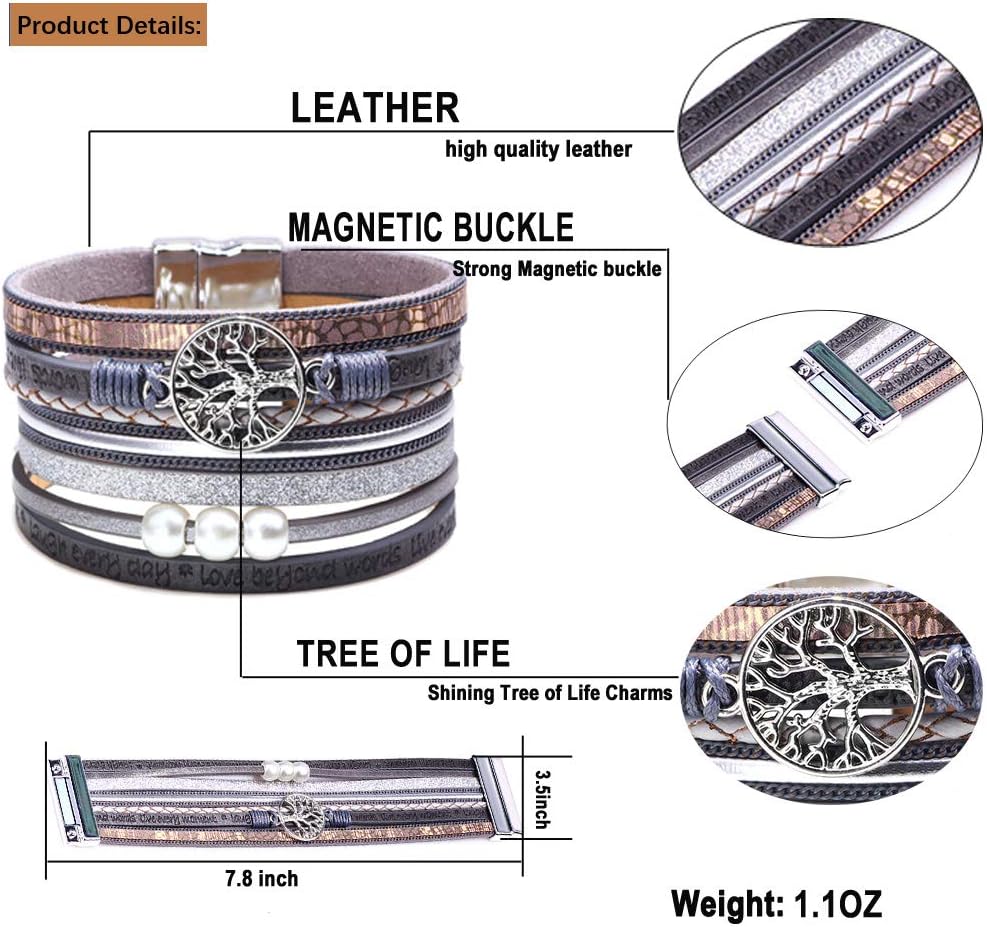 Inspirational Tree of Life Leather Bracelets for Women,Mothers Day Bir – BUYO