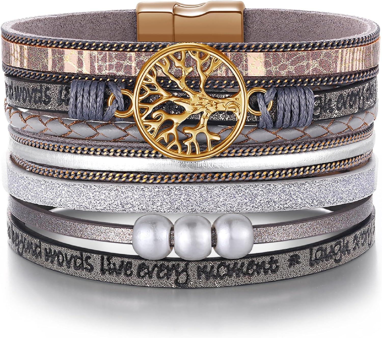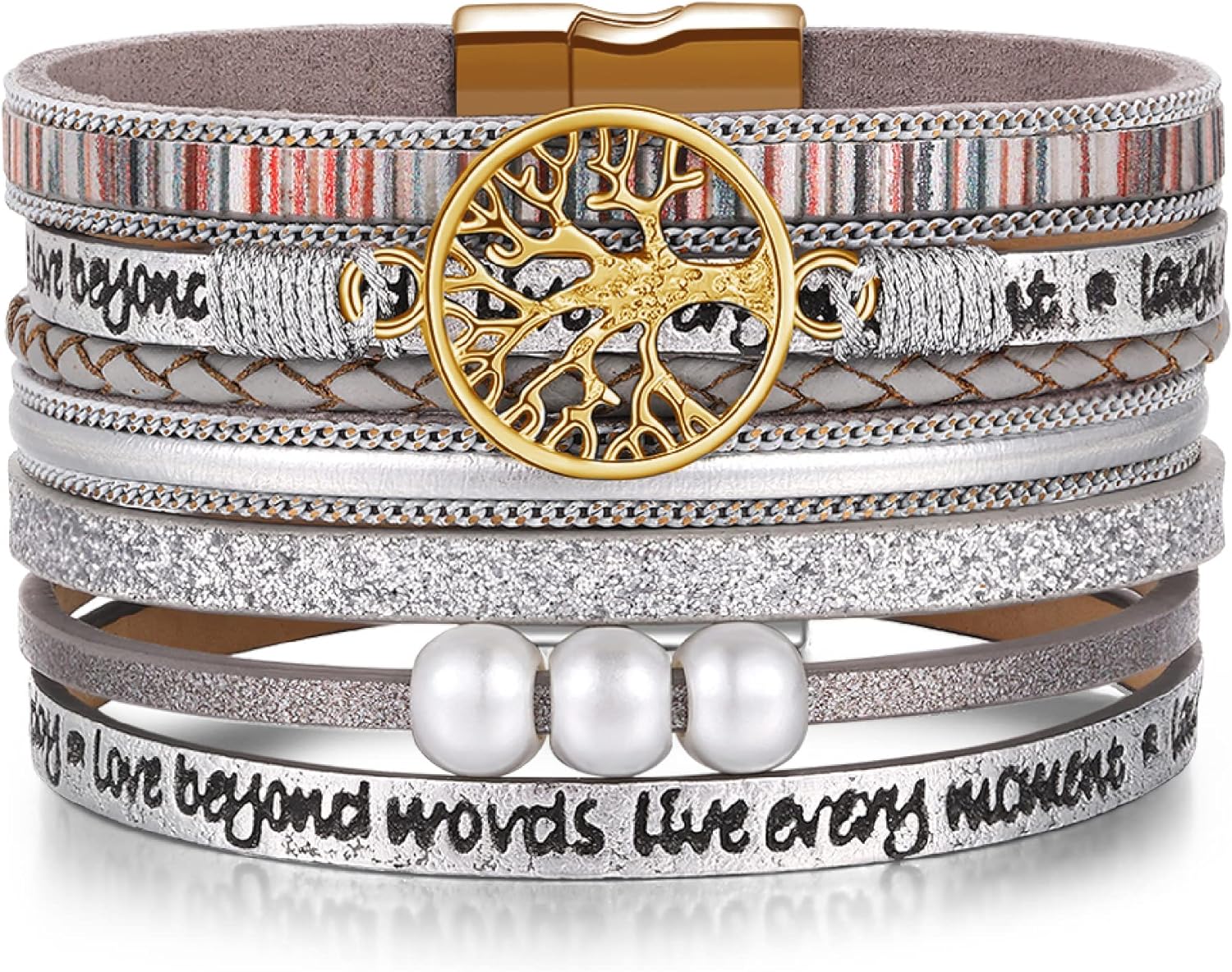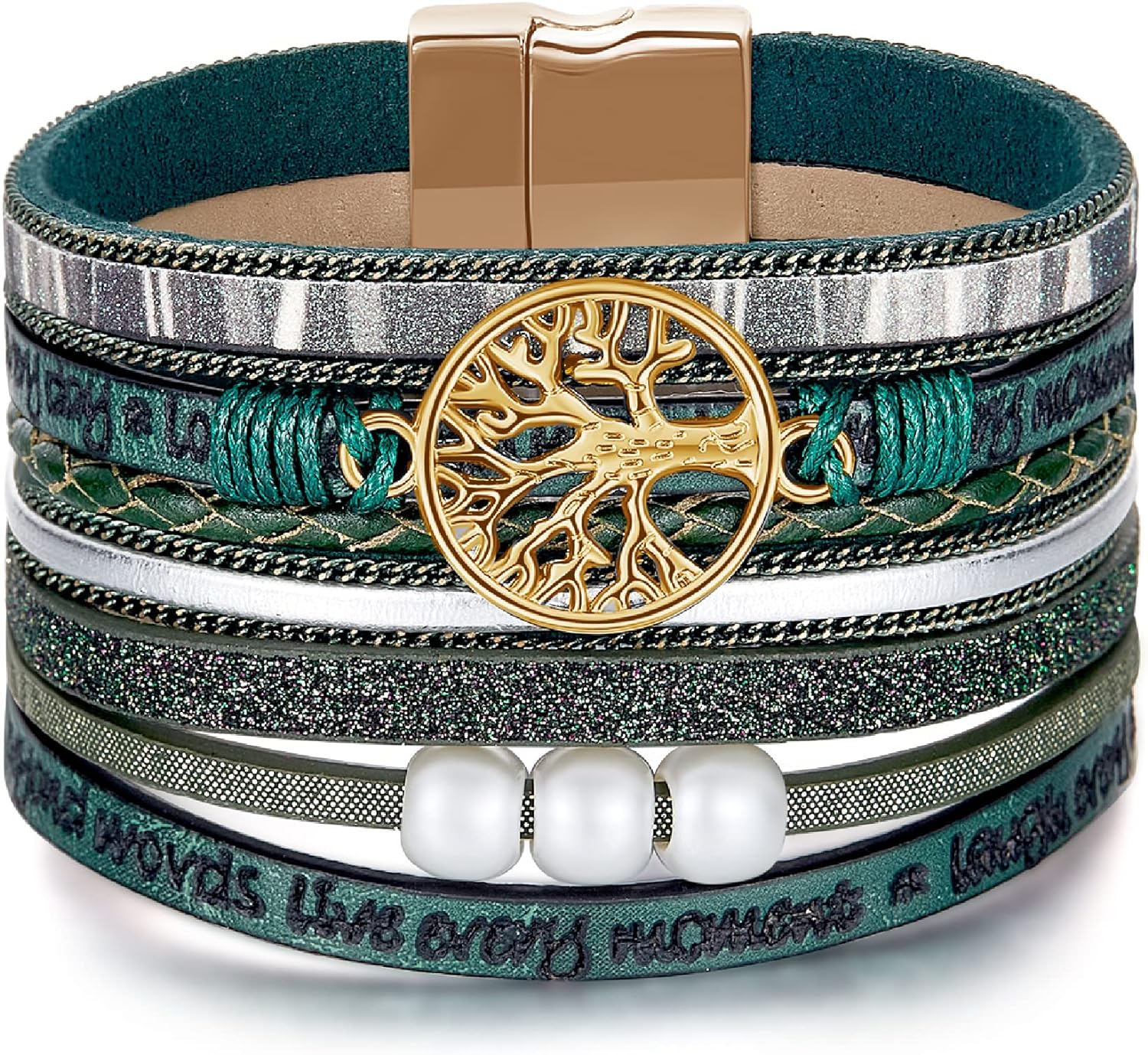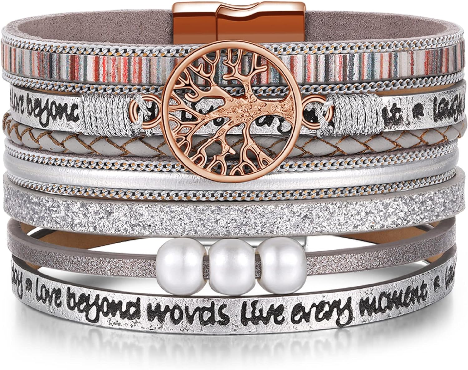 Inspirational Tree of Life Leather Bracelets for Women,Mothers Day Bir – BUYO