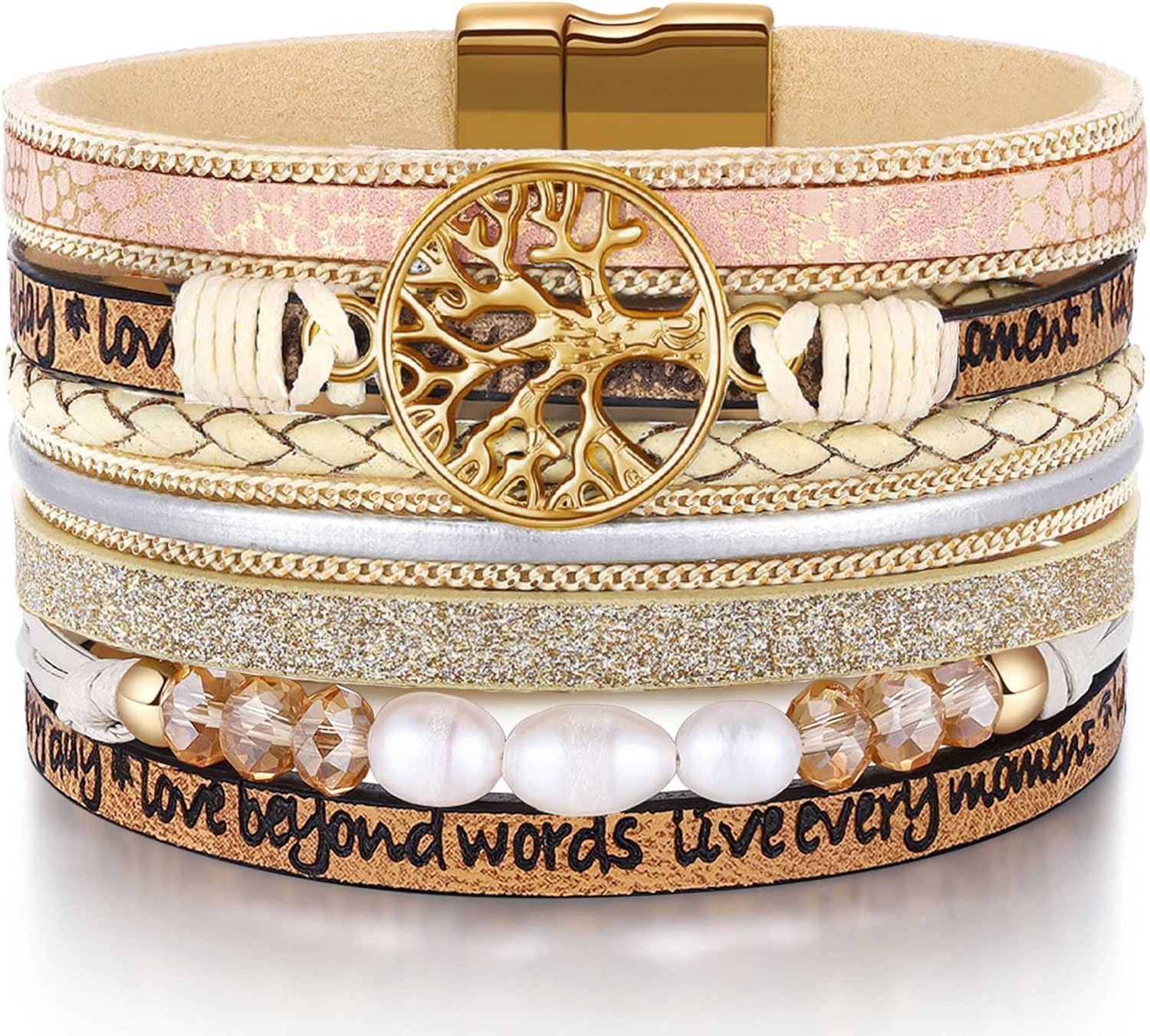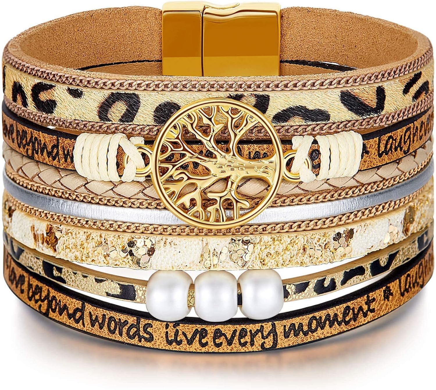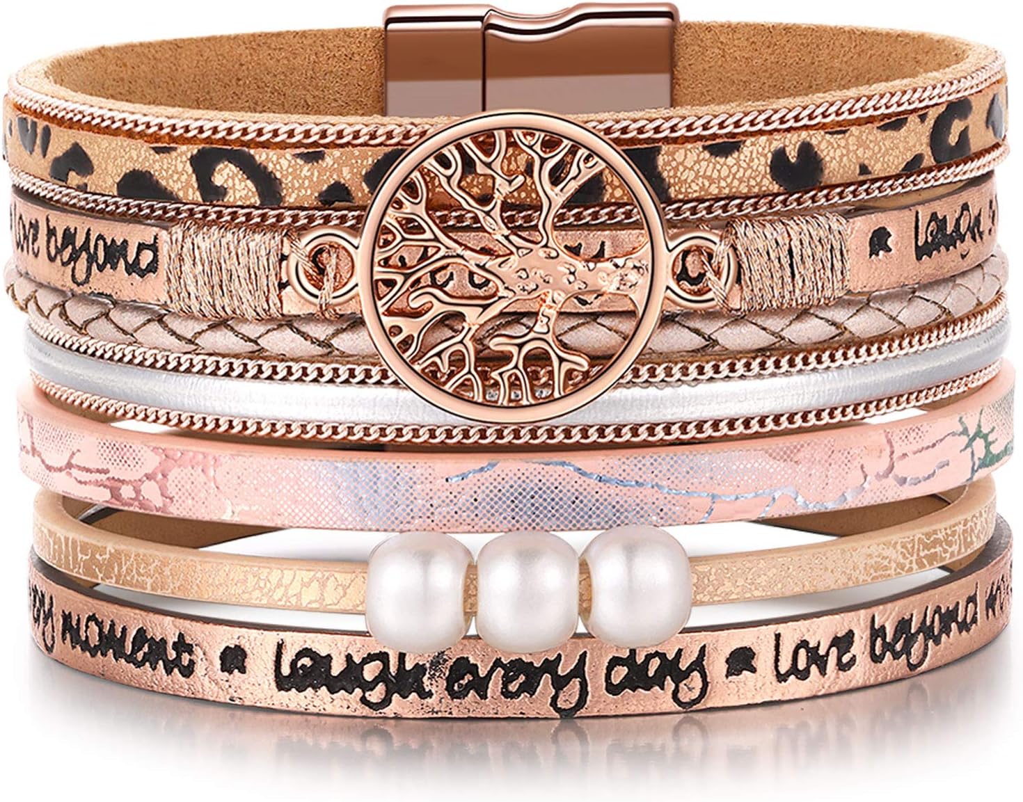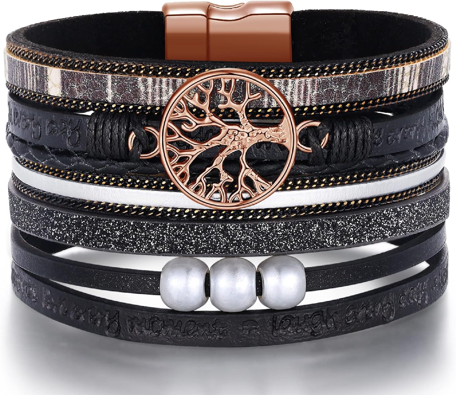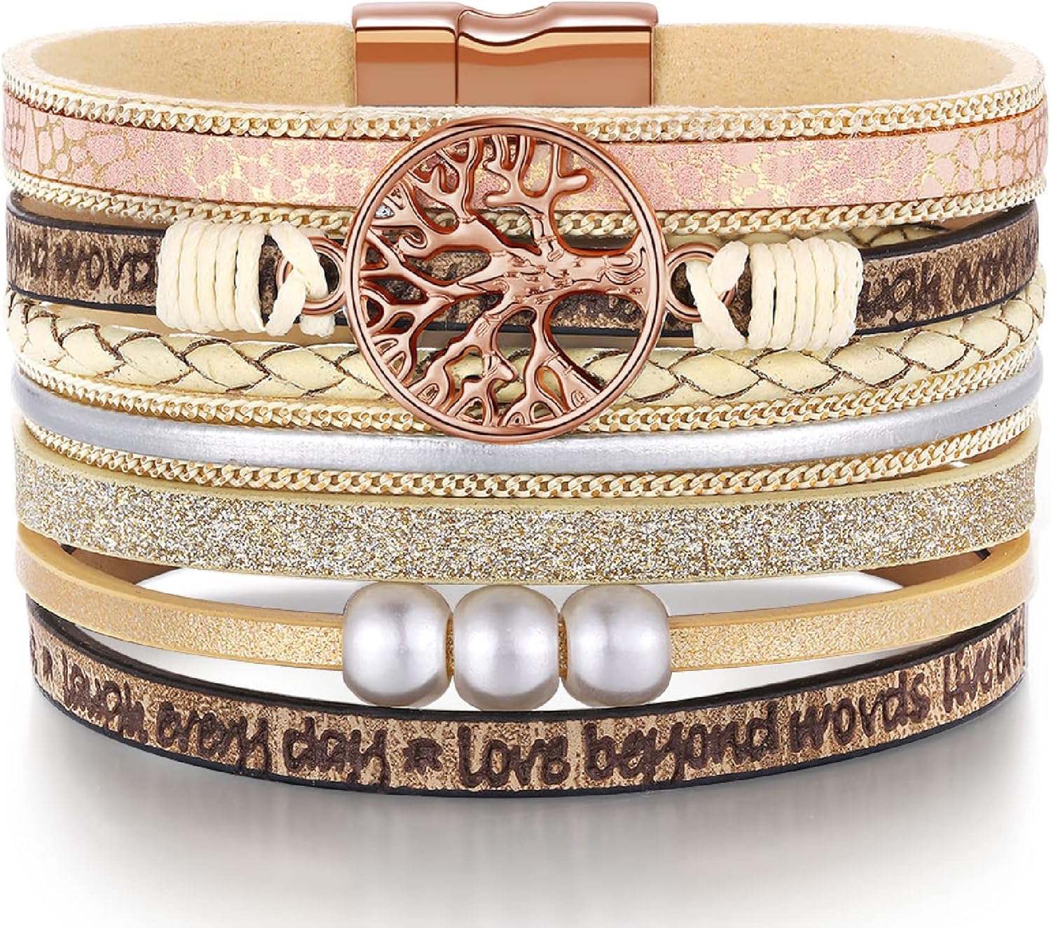 Inspirational Tree of Life Leather Bracelets for Women,Mothers Day Bir – BUYO