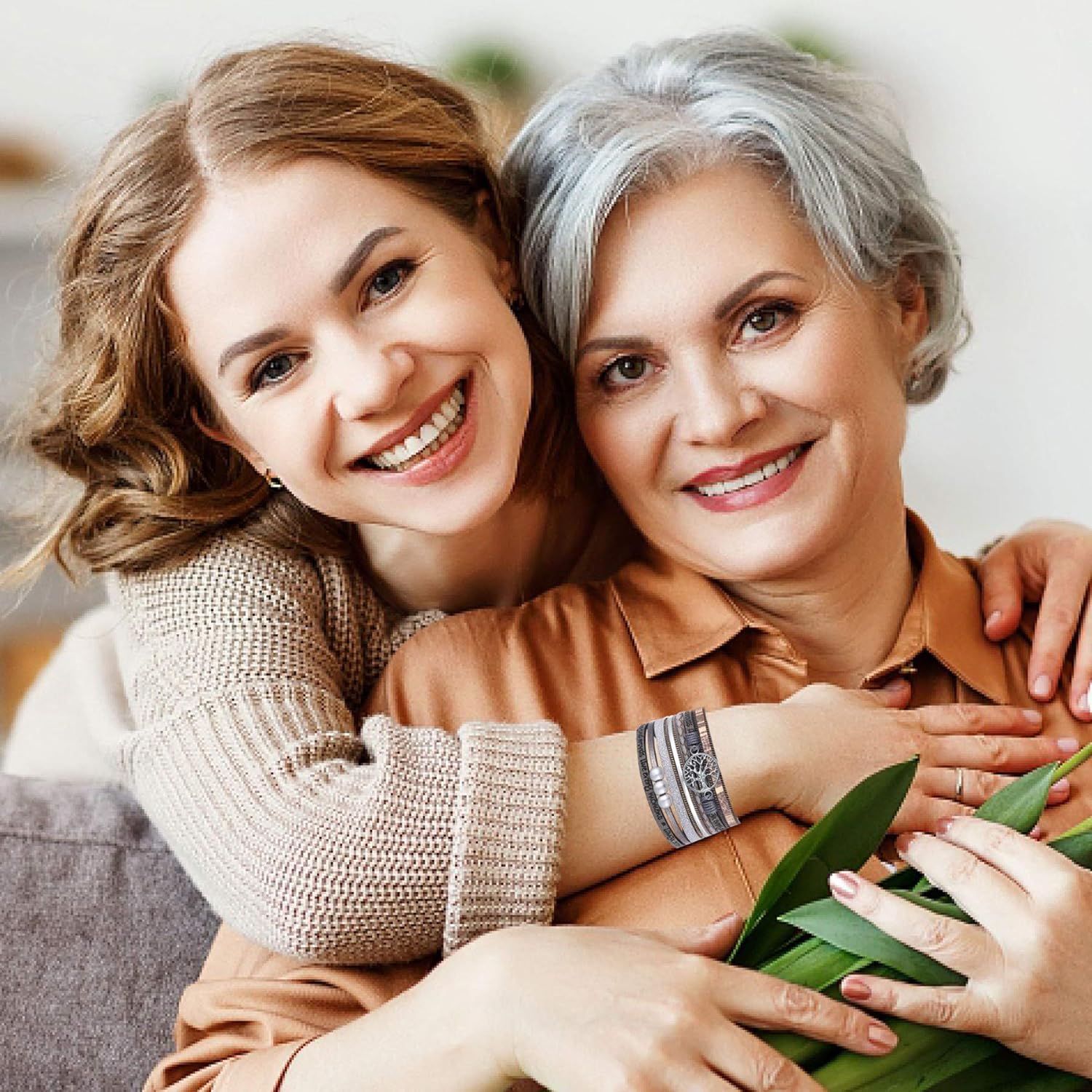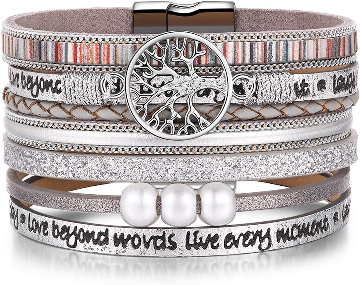 • 【UNIQUE DESIGN 】tree of life stacked leather wrap bracelets honor the beautiful branches of your family tree,and will remind her of the beautiful family she had. The heartfelt words on the leather are full of love and meaning,it's easy to express love. Unique yet fashion jewelry gift for women mom daughter on Mothers day Birthday Valentines Day