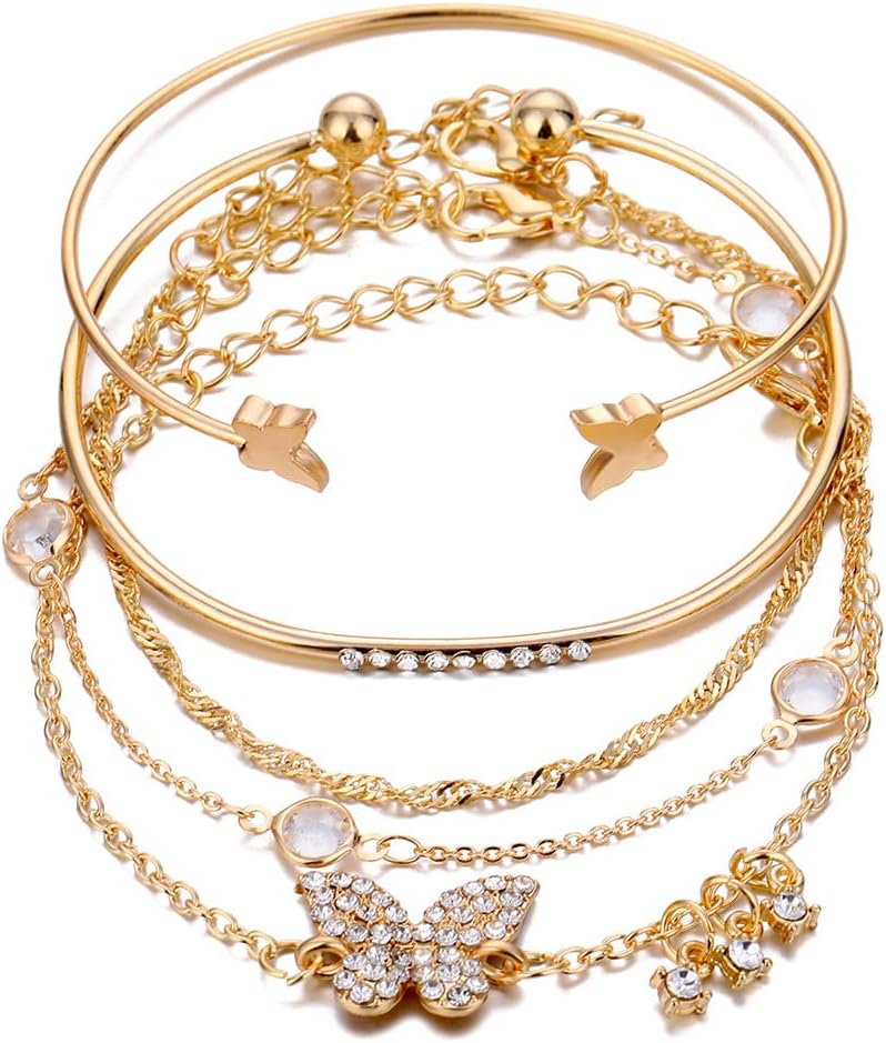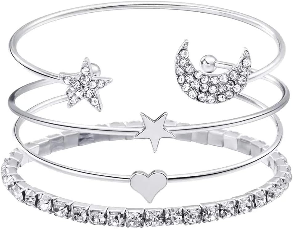 Shining Diva Fashion Latest Stylish Crystal Multilayer 3-5 pcs Set Charm Bracelets for Women and Girls