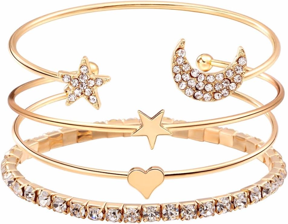 Set of 4 stylish Gold plated bracelet for Girls and women from the house of Shining Diva. This latest design bangle bracelet can be used by ladies as daily wear or party wear. This modern stylish bracelet is perfect to revamp your fashion jewellery collection. These are also ideal for special gifts for Girls for Birthday, wife, best friend, valentine gifts for girlfriend love, wedding gifts and anniversary gifts. Shining Diva is a well known brand across fashion jewellery sector. Shining Diva products are stylish and funky and are available at most affordable prices. This Gold plated jewellery is studded with crystals stones. Shining Diva has huge collection of latest bangles for women traditional, bangles for wedding, party wear earrings, charm bracelets, western wear modern choker necklace for women, traditional jewellery set, pendant set and other accessories jwelleries for women which includes ear cuffs, fashion party wear necklace and traditional jhumki jhumka earrings. Shining Diva is pioneer of imitation jewellery and designer crystal pendant for Girls. Shining Diva fashion and traditional jewelry give true value for your money. Buy Shining Diva trendy, artificial and semi precious jewellery from Amazon in low price offer.