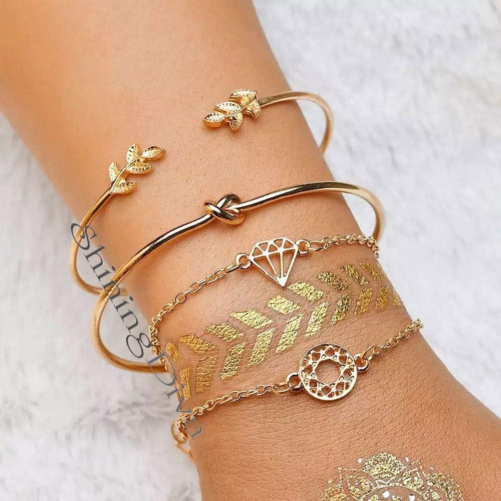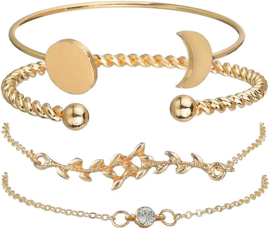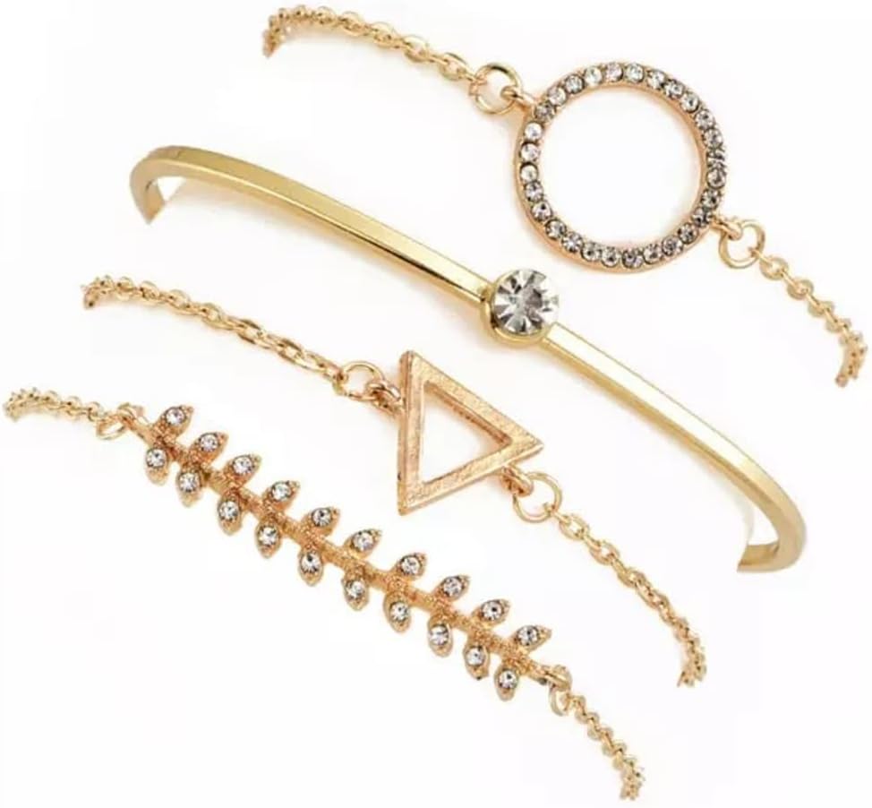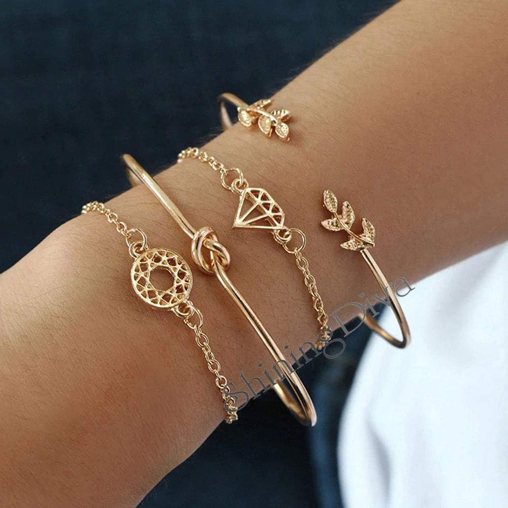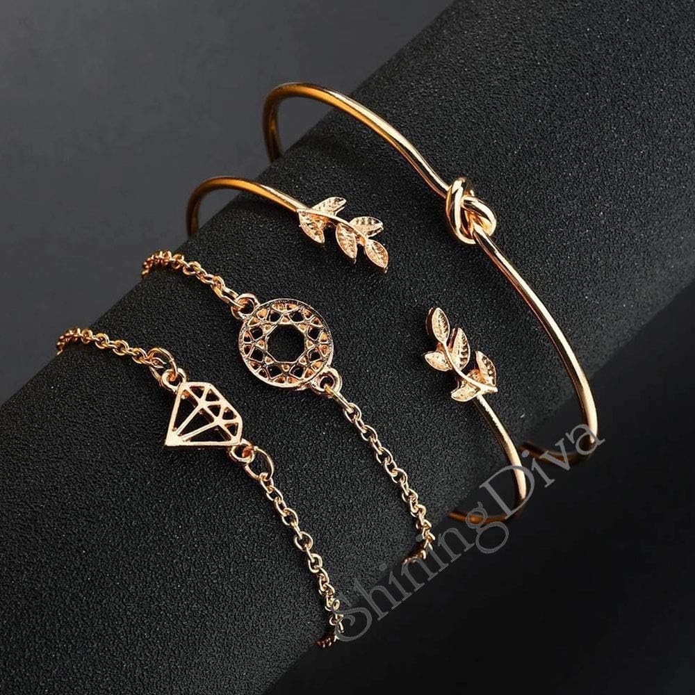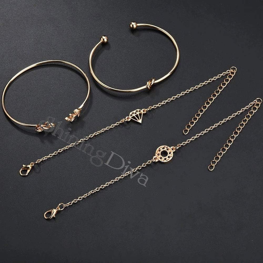 Set of 4 stylish Gold plated bracelet for Girls and women from the house of Shining Diva. This latest design bangle bracelet can be used by ladies as daily wear or party wear. This modern stylish bracelet is perfect to revamp your fashion jewellery collection. These are also ideal for special gifts for Girls for Birthday, wife, best friend, valentine gifts for girlfriend love, wedding gifts and anniversary gifts. Shining Diva is a well known brand across fashion jewellery sector. Shining Diva products are stylish and funky and are available at most affordable prices. This Gold plated jewellery is studded with crystals stones. Shining Diva has huge collection of latest bangles for women traditional, bangles for wedding, party wear earrings, charm bracelets, western wear modern choker necklace for women, traditional jewellery set, pendant set and other accessories jwelleries for women which includes ear cuffs, fashion party wear necklace and traditional jhumki jhumka earrings. Shining Diva is pioneer of imitation jewellery and designer crystal pendant for Girls. Shining Diva fashion and traditional jewelry give true value for your money. Buy Shining Diva trendy, artificial and semi precious jewellery from Amazon in low price offer.