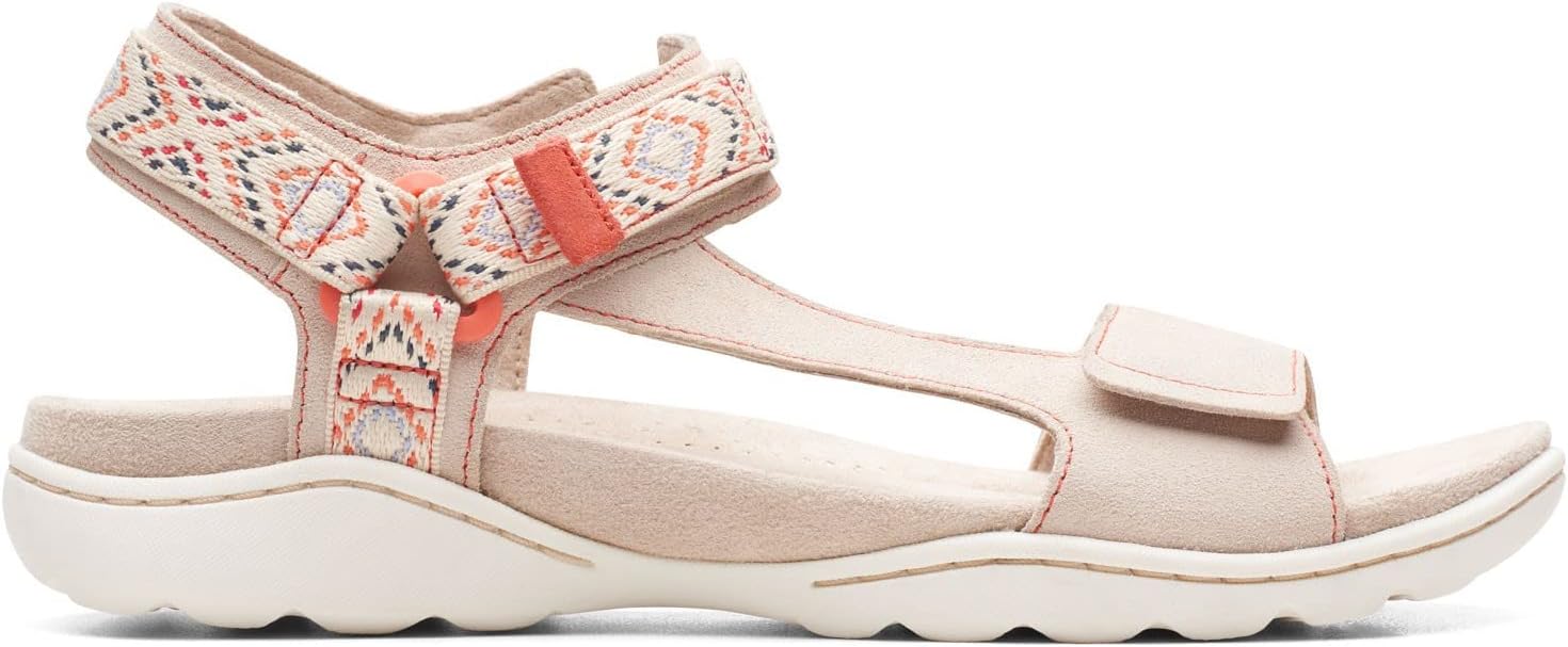 A supportive all-terrain sandal, Amanda Step is crafted for casual, active summer style. The adjustable strap combines with supreme cushioning and grip underfoot for lasting comfort and a custom, secure fit – ideal for on-the-go wear. - Soft sand suede upper - Breathable, perforated Cushion Feel footbed with added arch support and enhanced cushioning under the ball and heel - Lightweight EVA midsole offers underfoot comfort and shock absorption - Grippy and flexible TPR outsole - Backstrap has two points of adjustability ensuring a custom fit - Heel height: 27mm