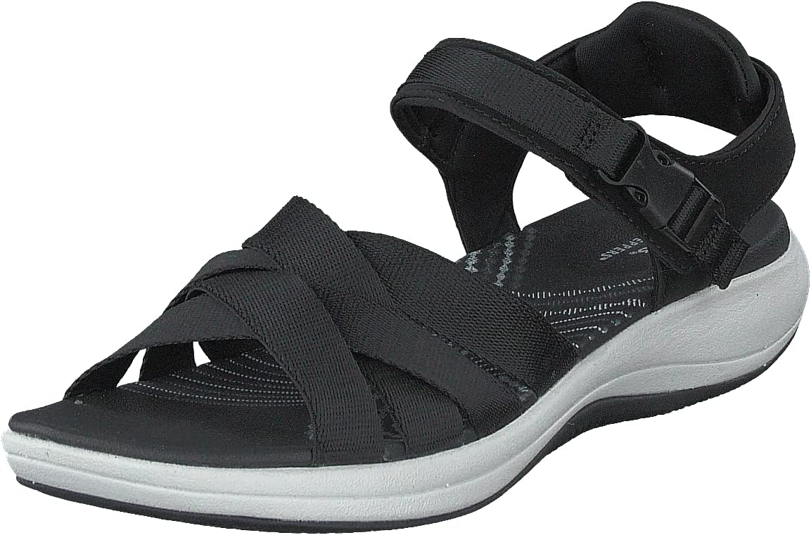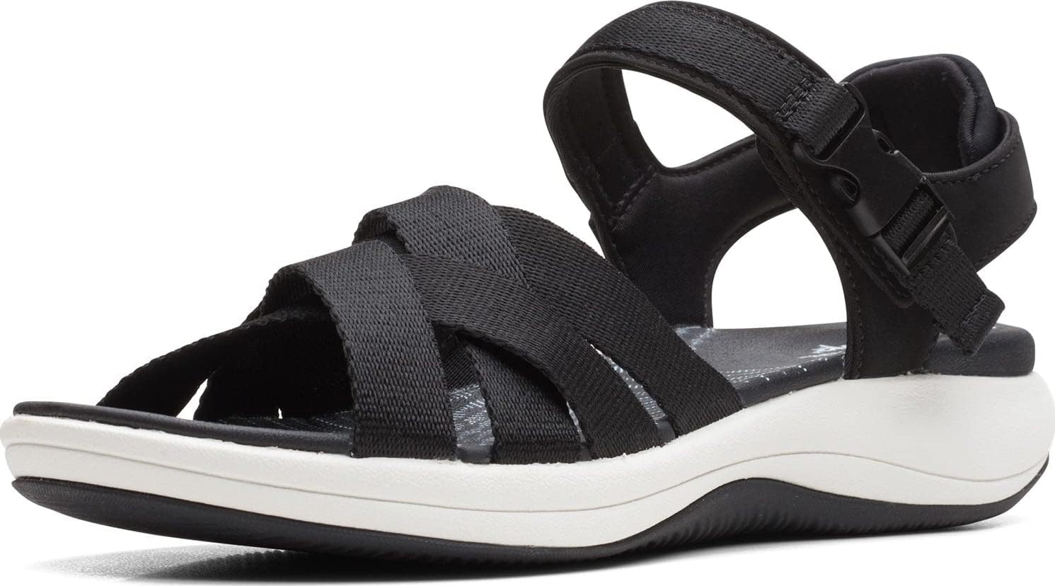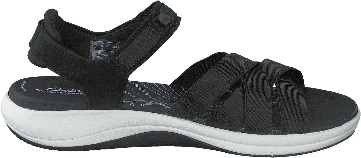 With classic Cloudsteppers™ comfort, Mira Tide in black textile is a super-wearable summer sandal. Feet stay fresh and comfy thanks to breathable cushioning and lightweight support underfoot. - Cushion Soft™ OrthoLite® eco foam footbed offers conscious underfoot comfort - Lightweight EVA midsole - Grippy TPR rubber outsole - Heel height: 40mm