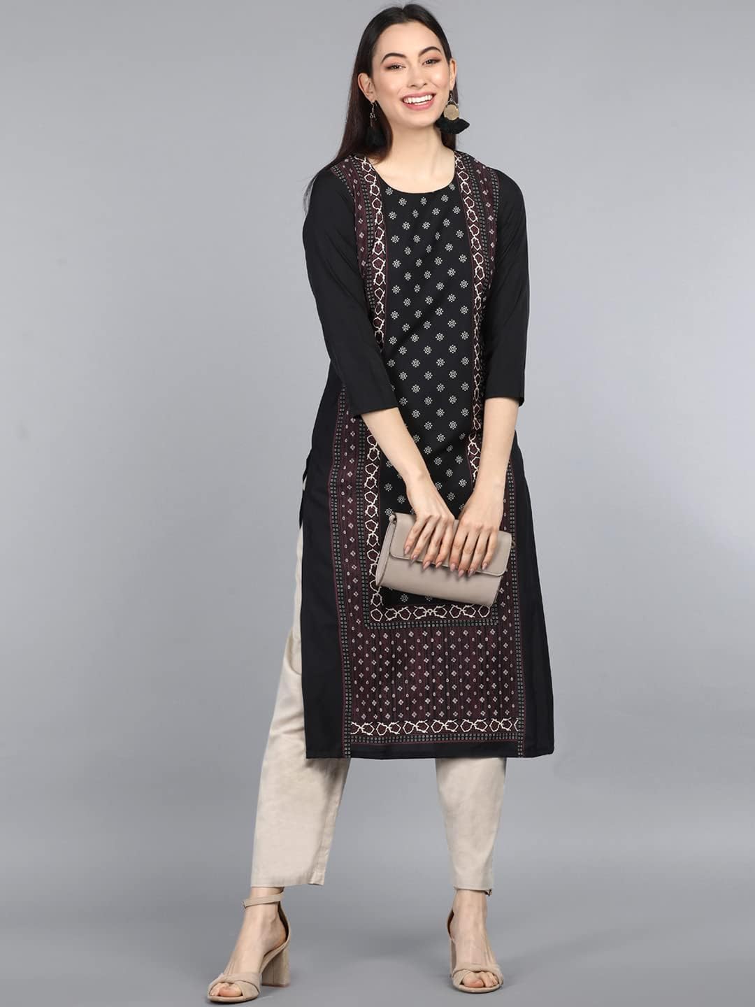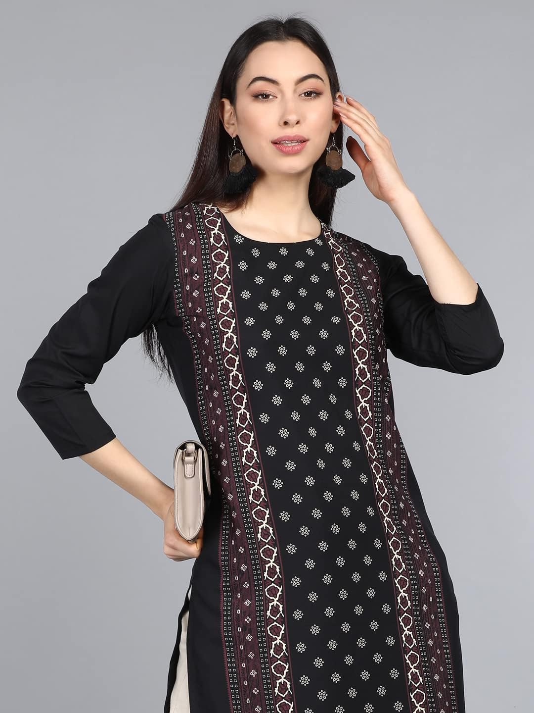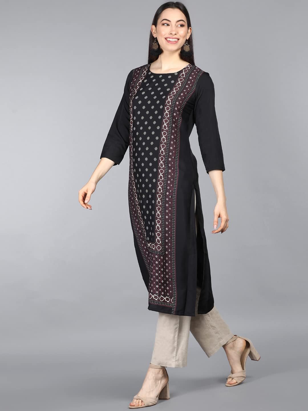 • Material: Crepe with three quarter sleeve and round neck