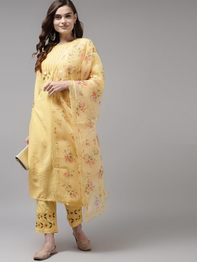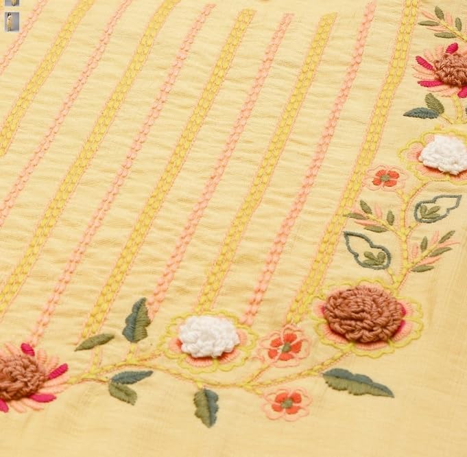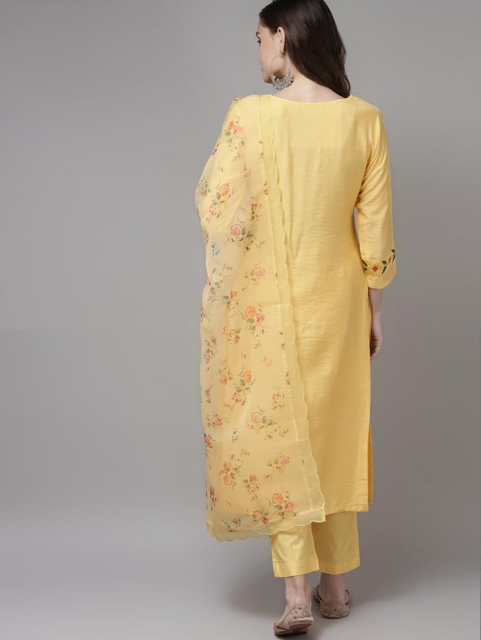 - Kurta design: Embriodered Kurta with round neck, 3/4 sleeves, calf length with straight hem