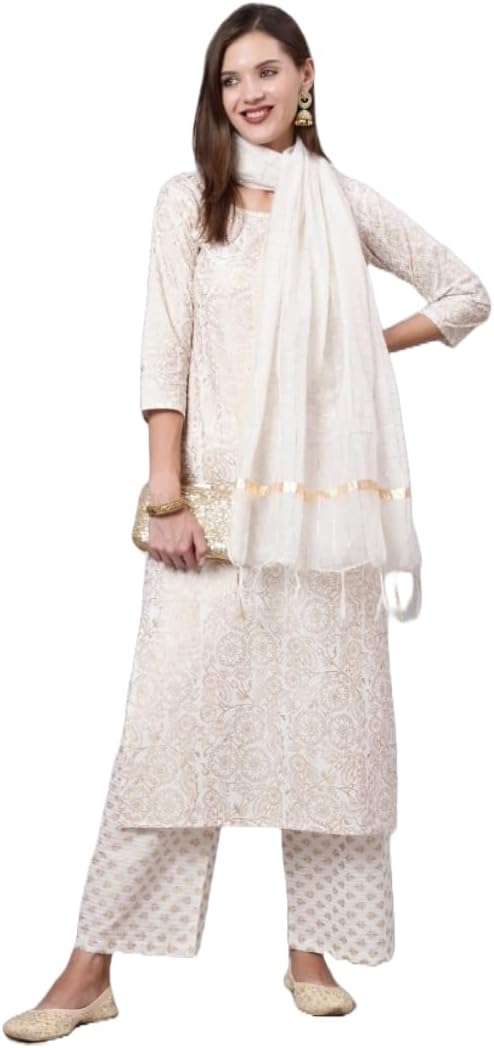 Women Kurti with Dupatta and Palazzo Set | Ladies Top Kurta Kameez Sal – BUYO