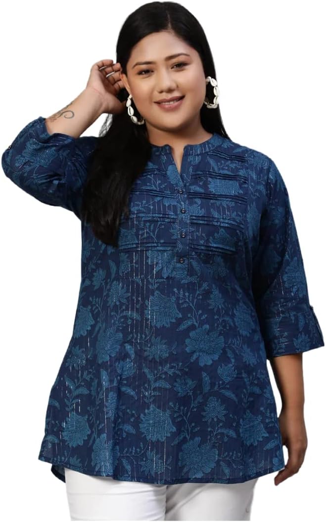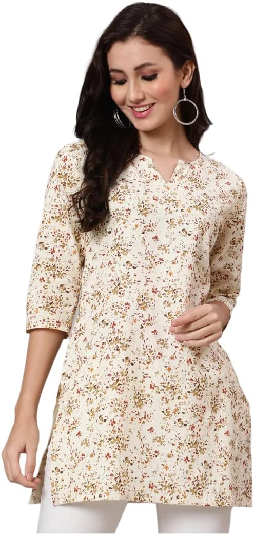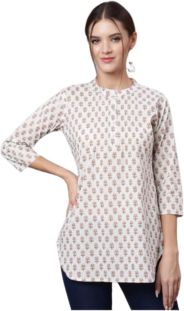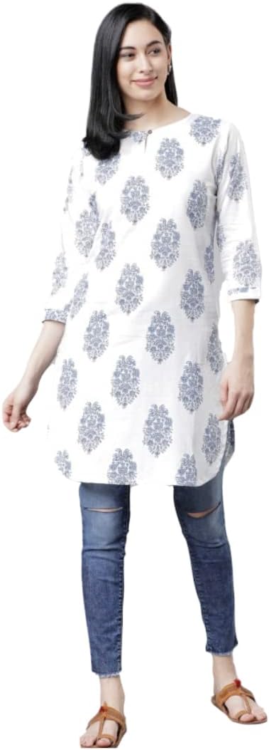 Women Printed Straight Kurti | Ladies Kurta Blouse T-shirt Tunic Top | Ethnic Traditional Ready to Wear