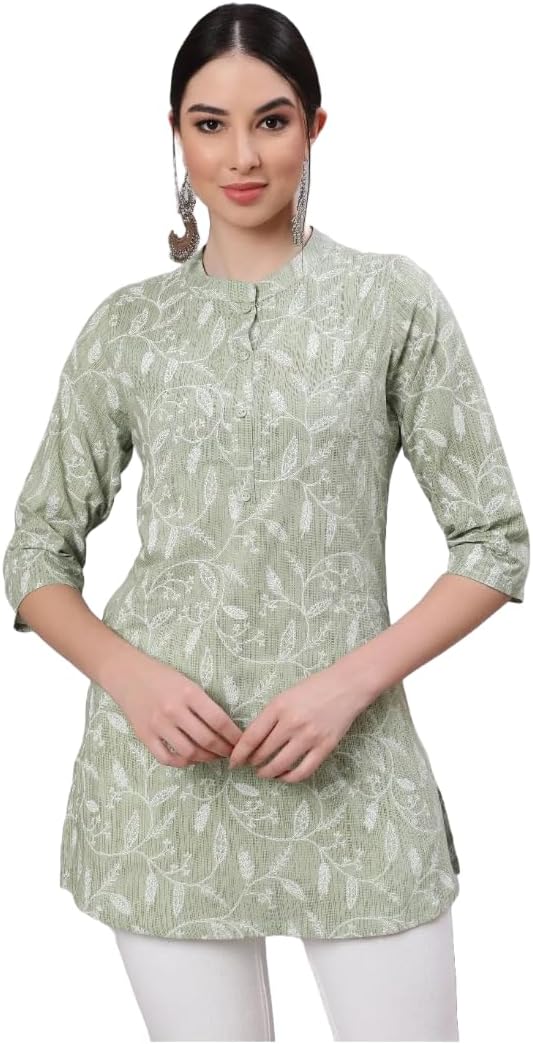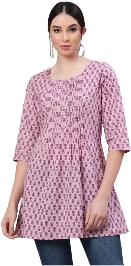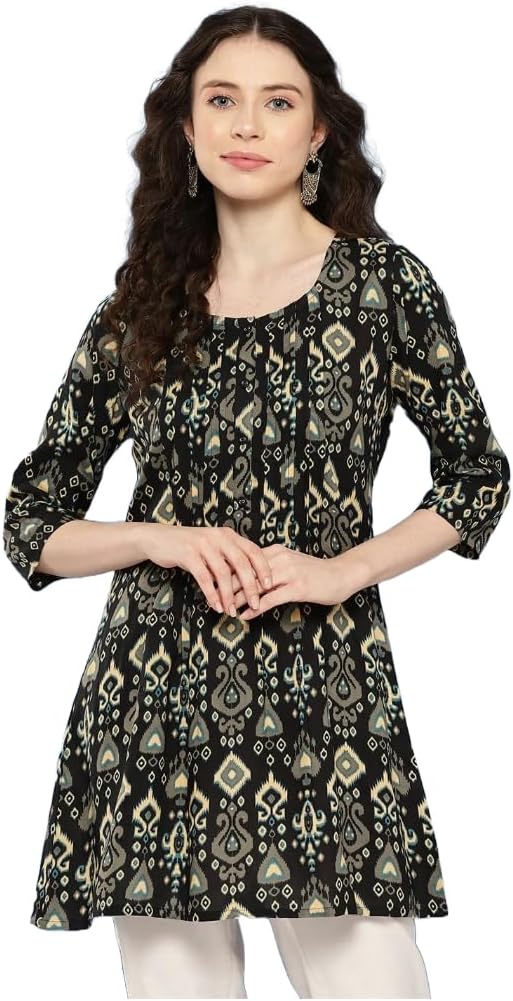 Women Printed Straight Tunic Top | Ladies Kurti Kurta Blouse T-shirt | – BUYO