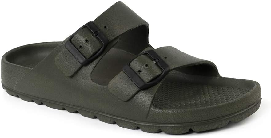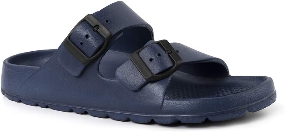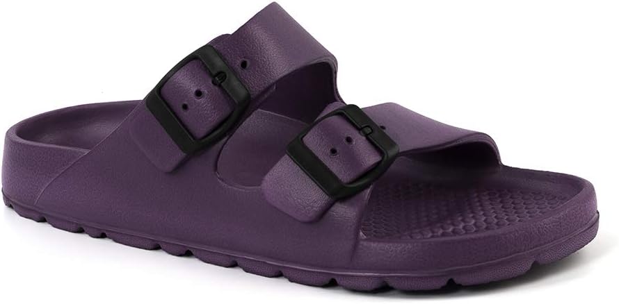 FUNKYMONKEY Women's Comfort Slides Double Buckle Adjustable EVA Flat Sandals