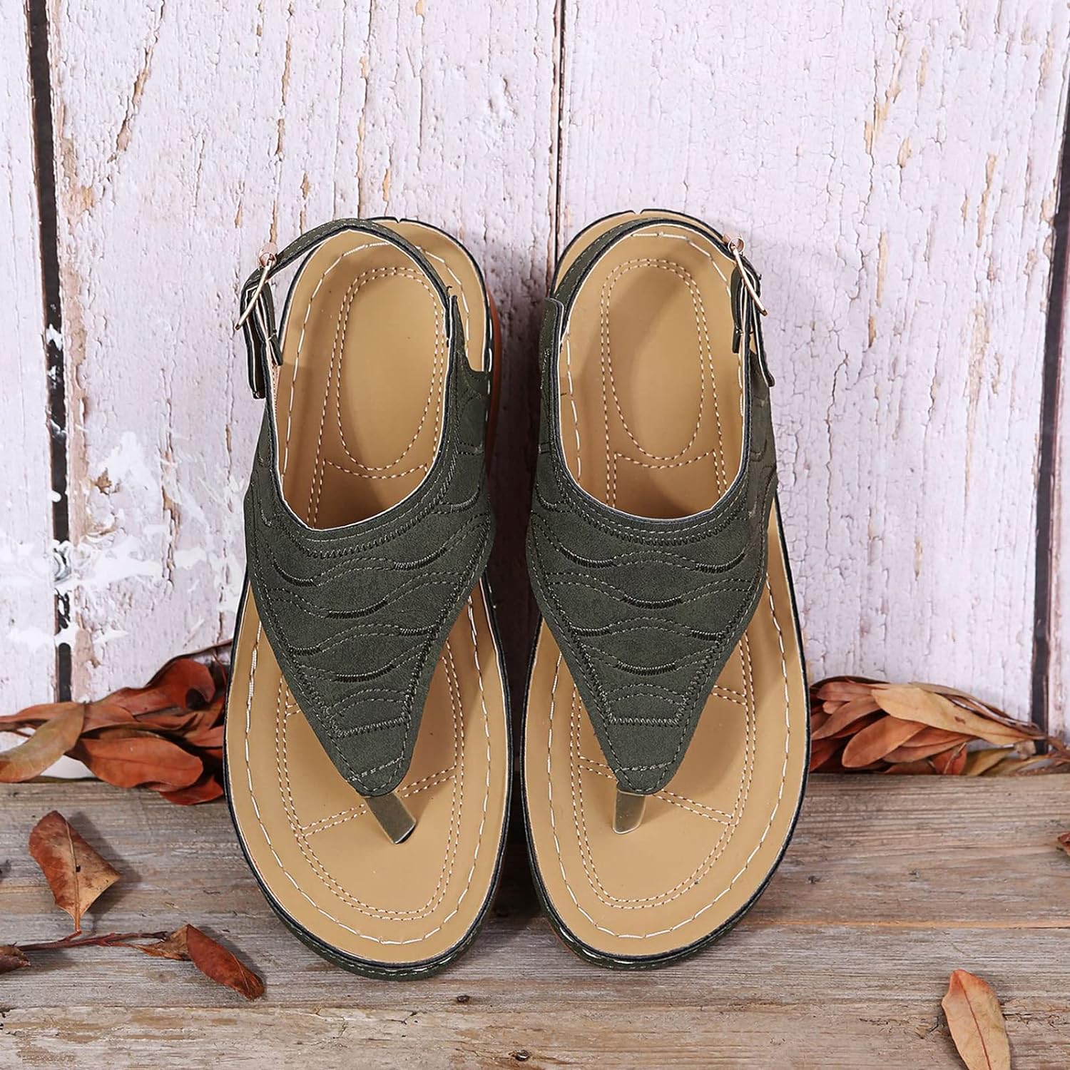 Low-Wedge Women Orthopedic Sandals Casual Flat Shoes Flip Flops Ladies Anti-Slip Summer Roman Open Toe Sandals Comfort Bunion Slippers Buckle-Strap Sandals