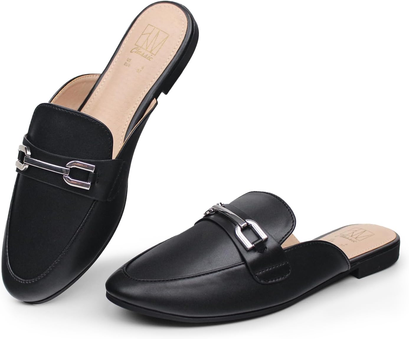 - 【OCCASIONS & MATCH】The low heel mules, a high quality faux leather. Metal buckle design make shoes look more classic and fashionable. These round toe flat mules are trendy and easy to match all clothes, whether you like trousers or dresses.Whether in spring, summer, autumn or winter, whether resting at home, walking outside, shopping in the supermarket or going out for an outing, our mules are an ideal choice.