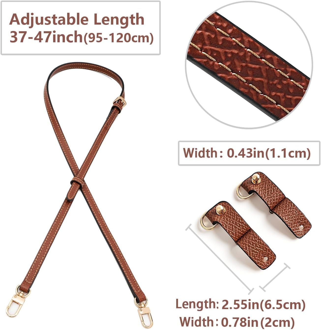 - Purse Strap Size Width: 0.43in/1.1cm; adjustable length: 37.4-47.2in (95-120cm).