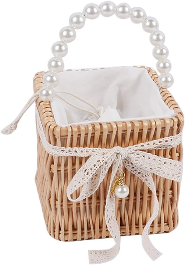 Straw Purse Beach Purse Wicker Bag for Women Beach Straw Bag Rattan Bag Basket Purse Pearl Straw Tote Bamboo Purse Wicker