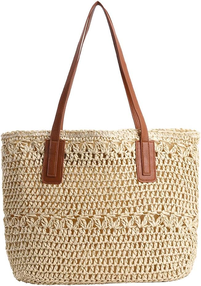 - 【Material】The straw tote bag is made of hand-woven straw, inner material polyester lining, with two PU shoulder straps, stylish and simple.