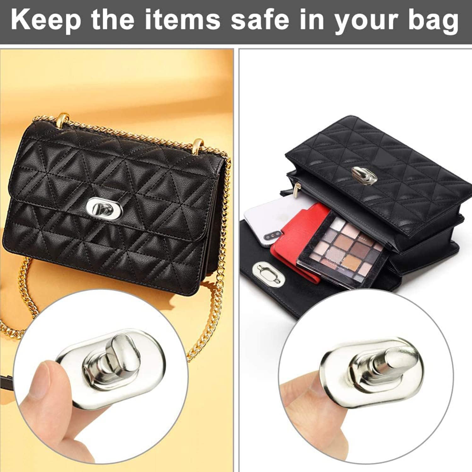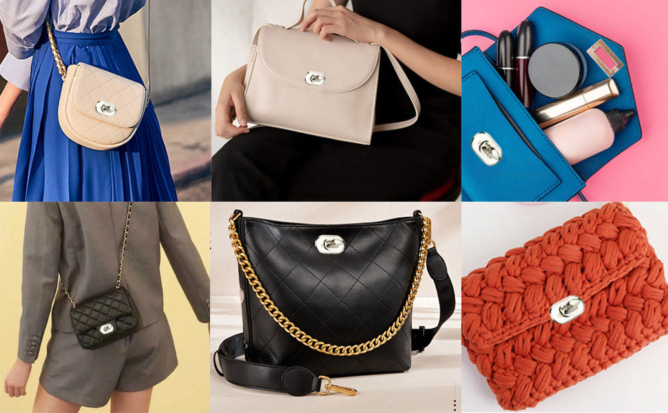 💼【Fashion & creative design】The twist locks are full of fashion and creative design, very practical hardware accessories to keep the items safe in your leather wallet, handbag, or luggage. The tuck lock bag clasp catch is perfect for your handicraft projects to maximize creative inspiration, enhance hands-on skills and make.