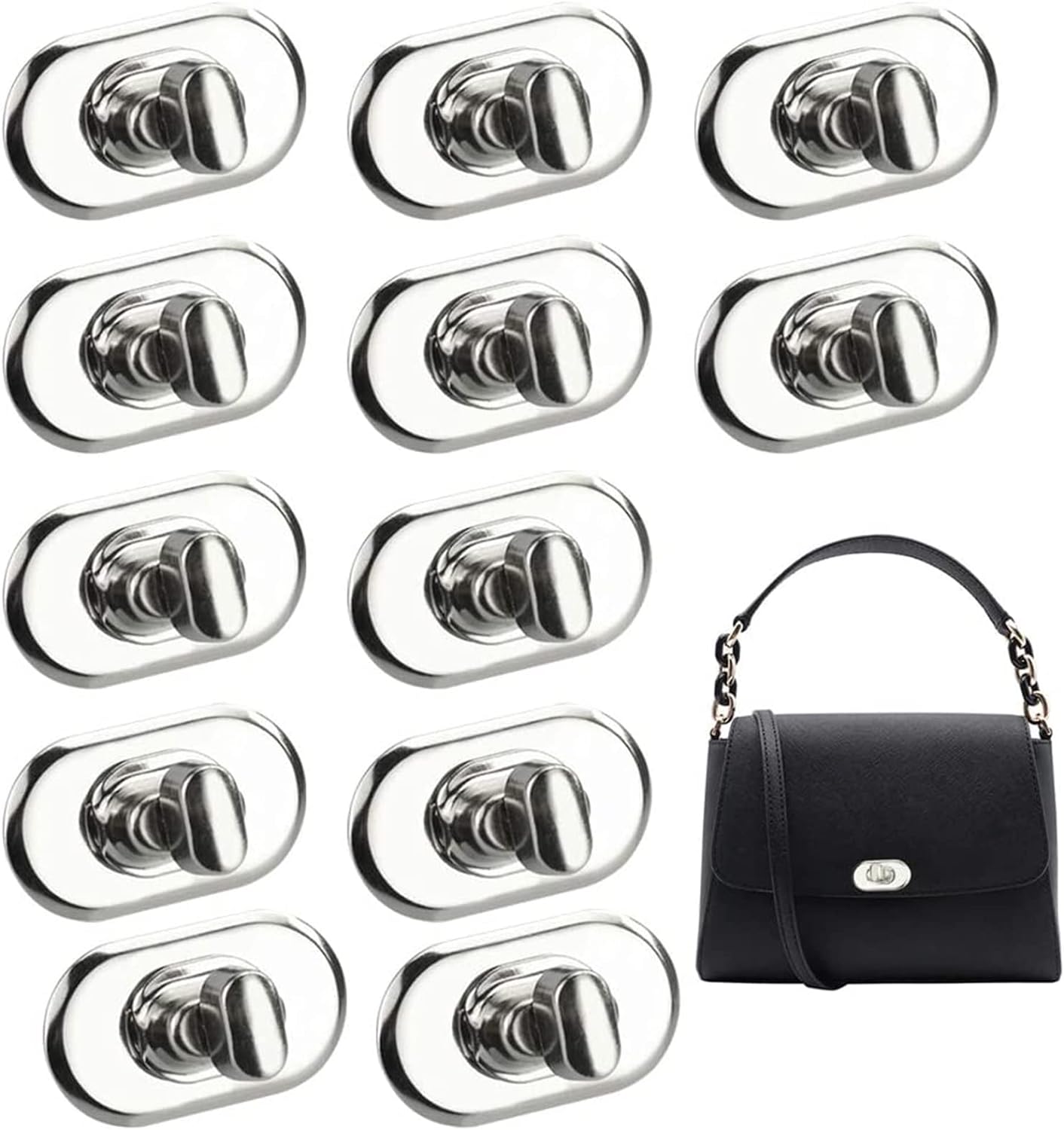 Turn Lock,Bag Clasps Twist Lock Thumb 12 Pack DIY Bag Buckle Purse Fashion Catches Metal Hardware Accessories for Bag Making, Book, Leather, Fabric, Handbag, Chrome Plating Anti Fade (Sliver)