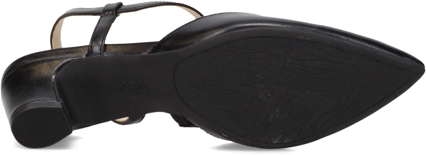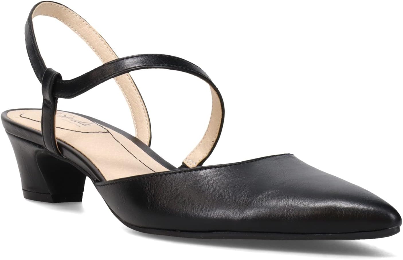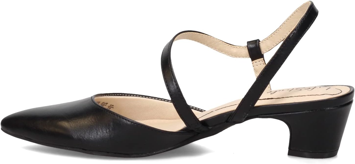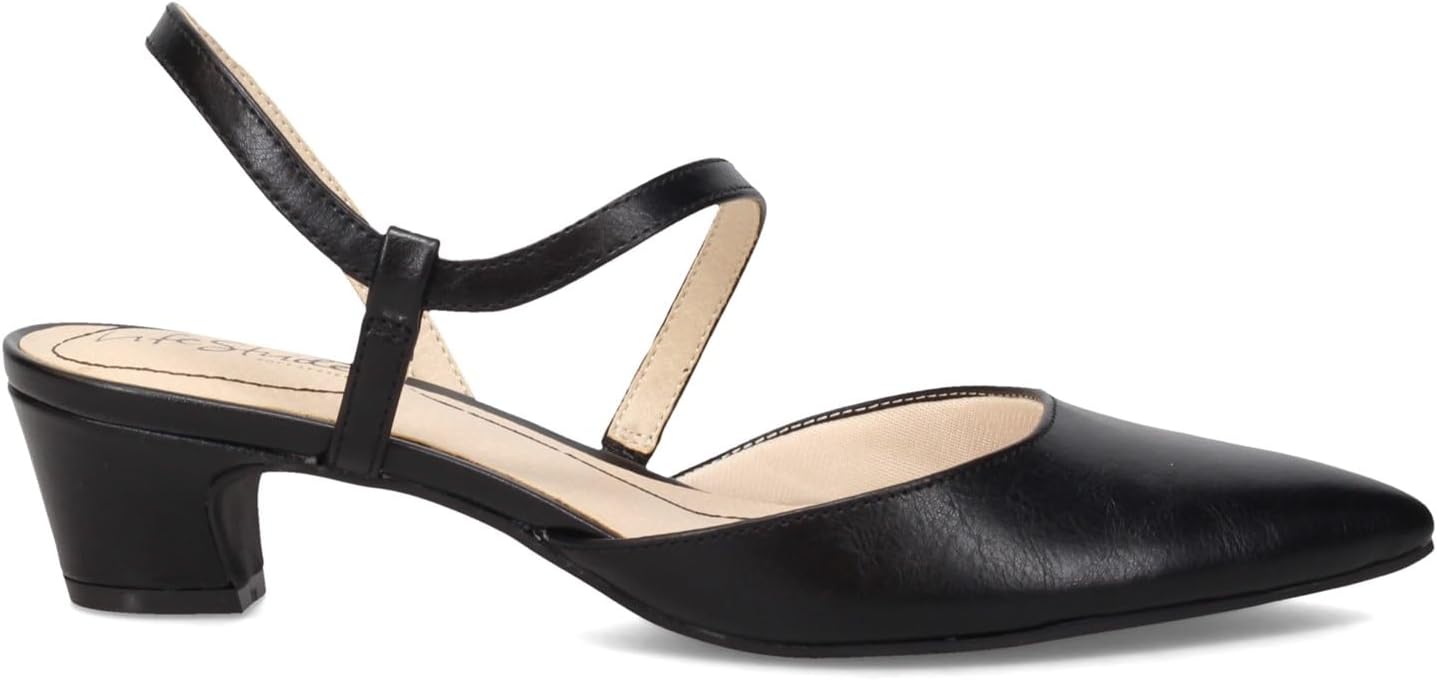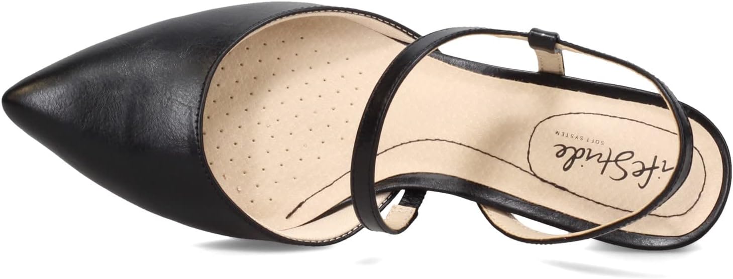 The seasonless staple. Top off any look with this gorgeous, perfectly pointed heel. Faux leather or fabric upper with a pointed toe, slip-on fit, and crisscross strap. Toe box, insole board, and linings partially crafted with recycled materials. Soft System® comfort package provides all-day support, flex, and cushioning. Traction sole provides you with extra stability. Just Right Height 1 and 1/2 inch heel.