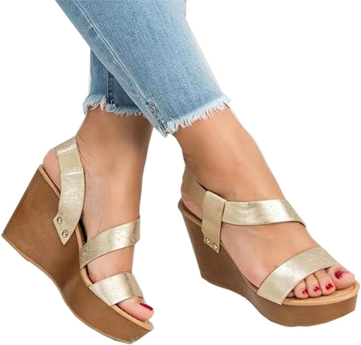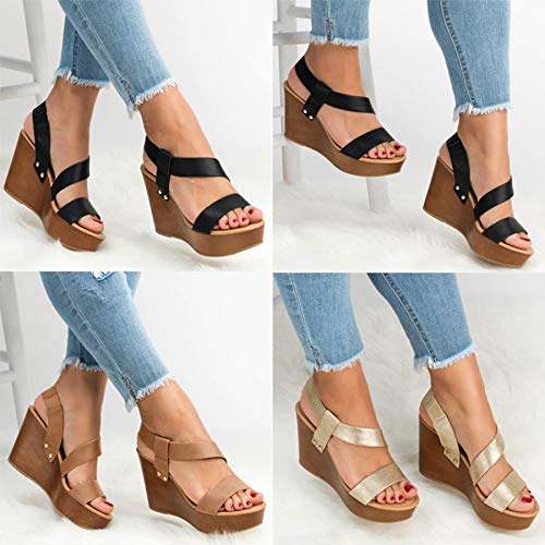 LIKQXONE Women Sandals Wedge Platform Sandals Summer Slip On Ladies High Heels Shoes Fashion Open Toe Casual Female Footwear(39EU,Gold)