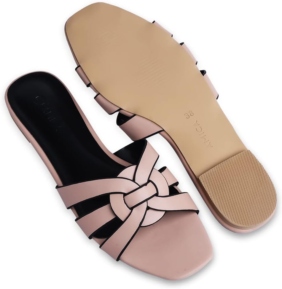 AMICA Azra Square Open Toe Low Heel Braided Twist Sandal صندل نسائي – BUYO