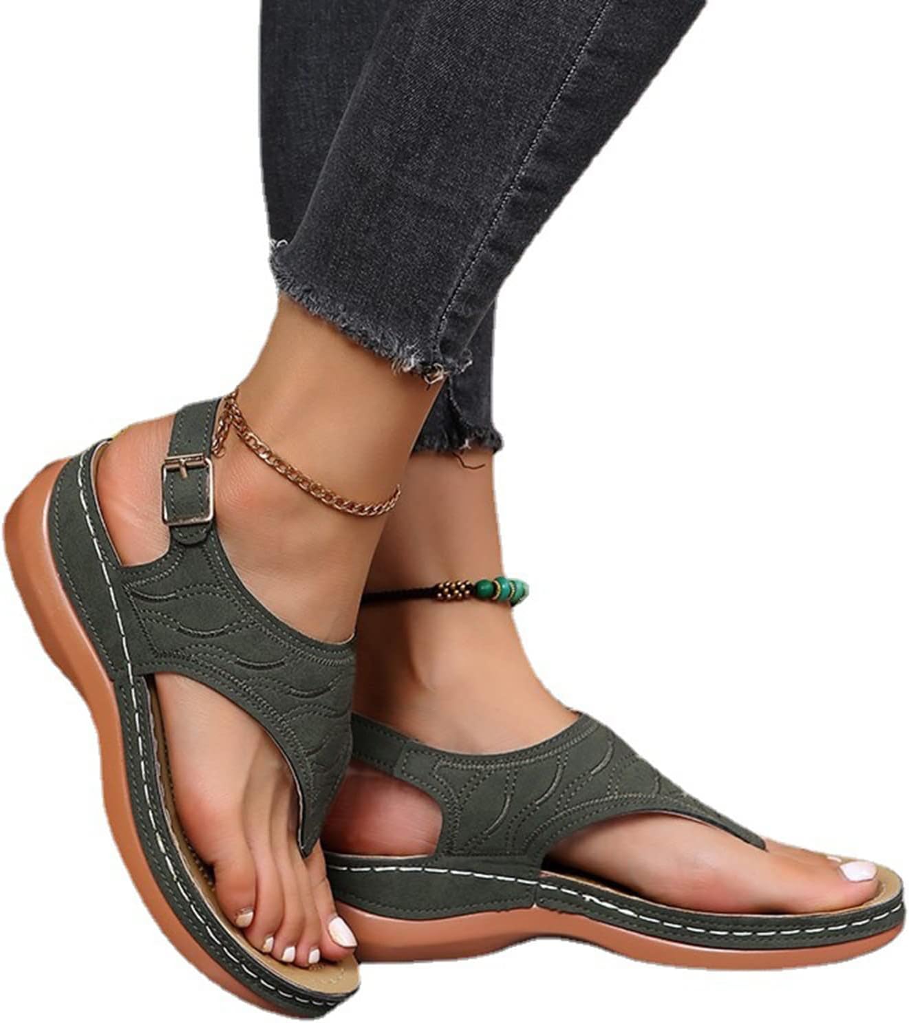 Low-Wedge Women Orthopedic Sandals Casual Flat Shoes Flip Flops Ladies Anti-Slip Summer Roman Open Toe Sandals Comfort Bunion Slippers Buckle-Strap Sandals
