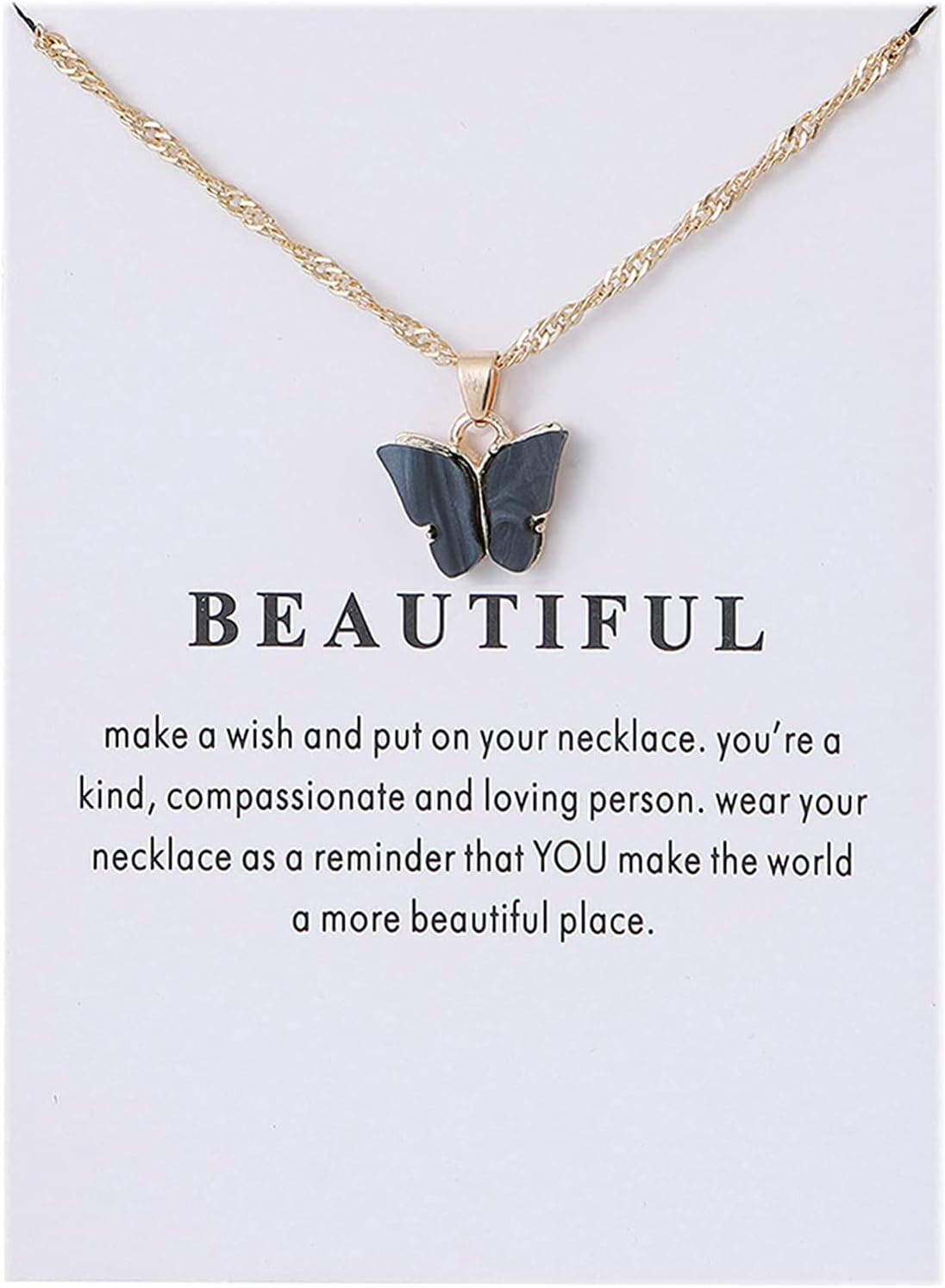 Kastwave Pendant Necklace, Women's Pendant Necklace Butterfly Moon Sterling Silver Gold Acrylic, Color Clavicle Chain Necklace Card Necklaces Clavicle Necklaces for Women Girls