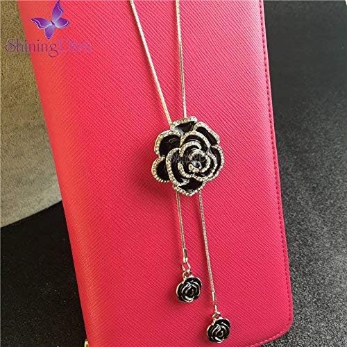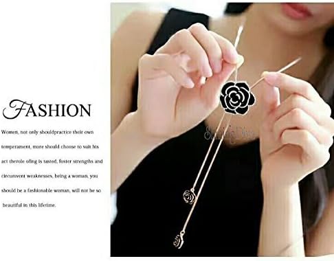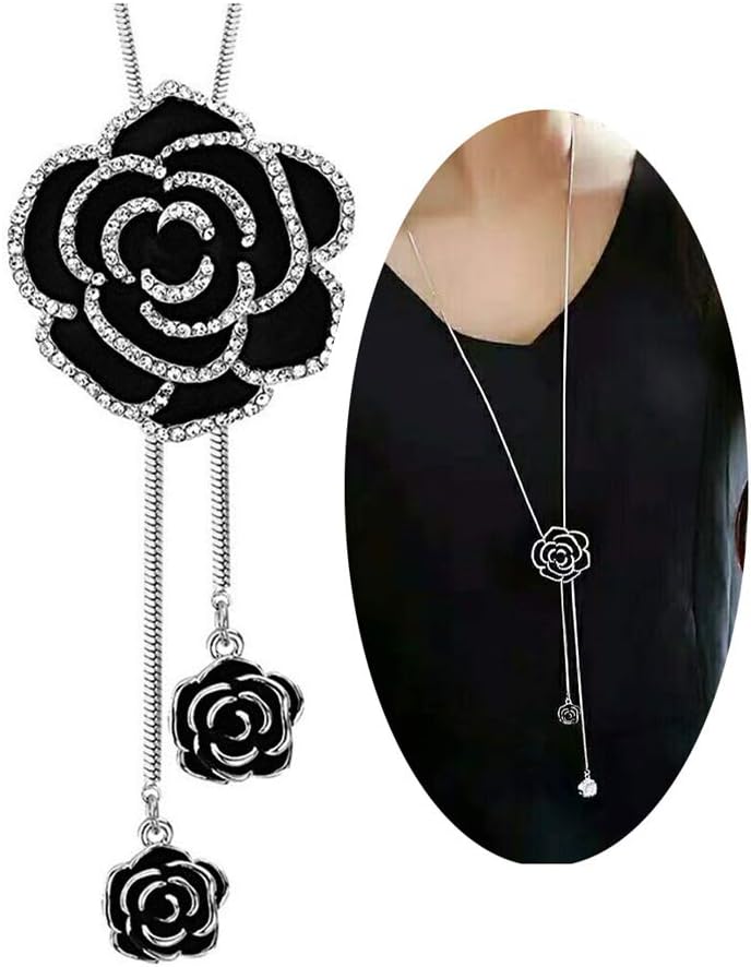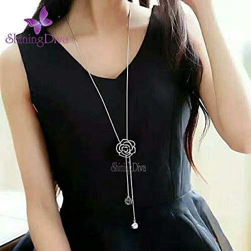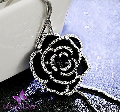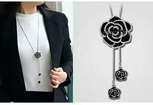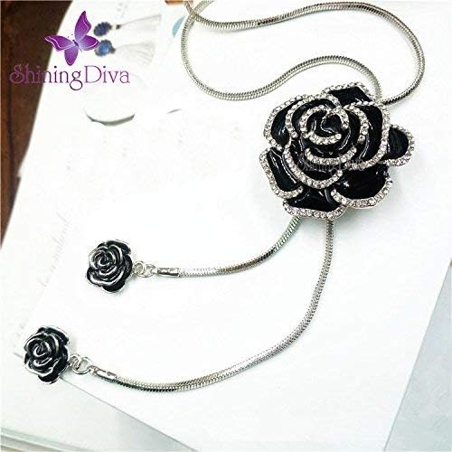 Shining Diva Fashion Long Chain Black Crystal Rose Flower Pendant Necklace for Women and Girls