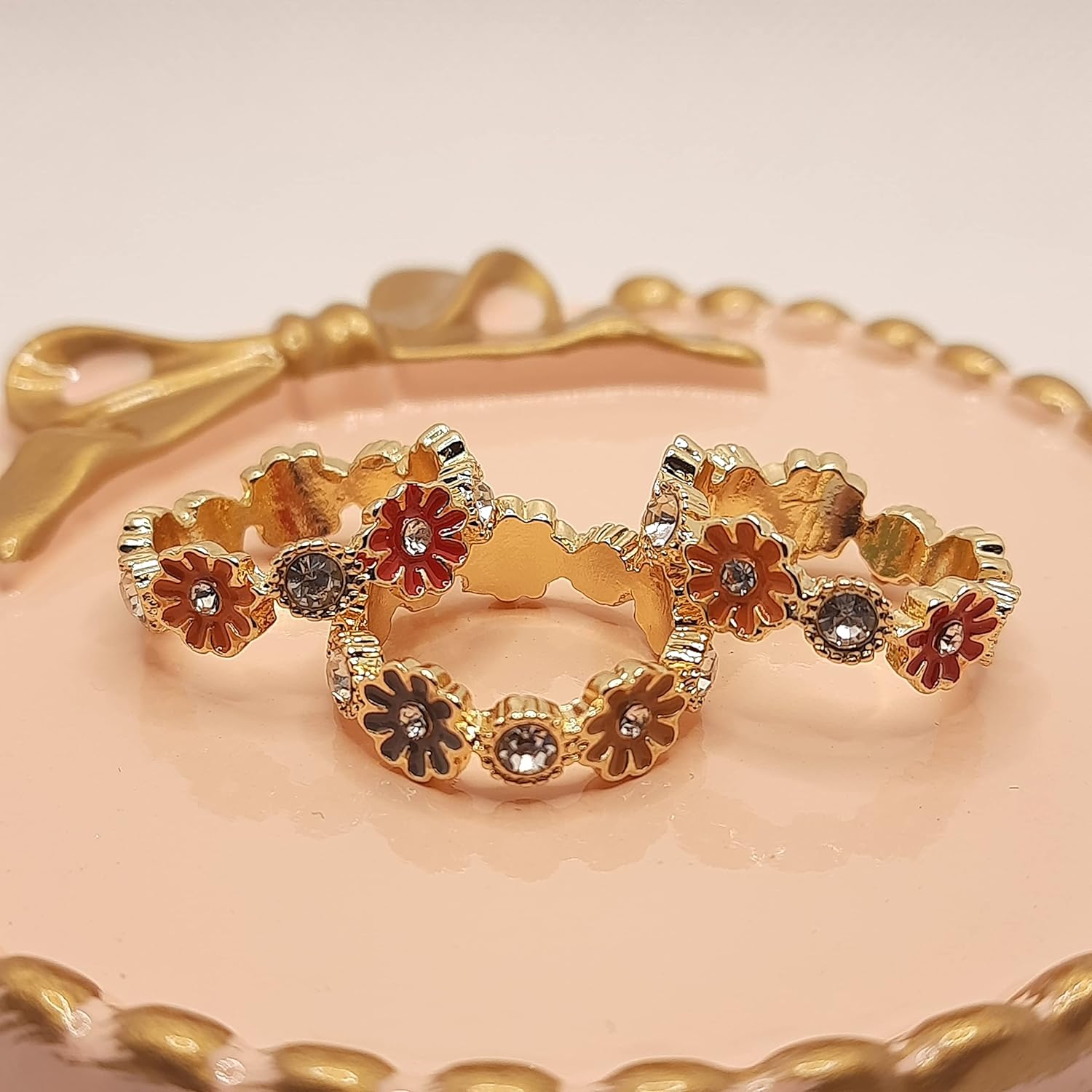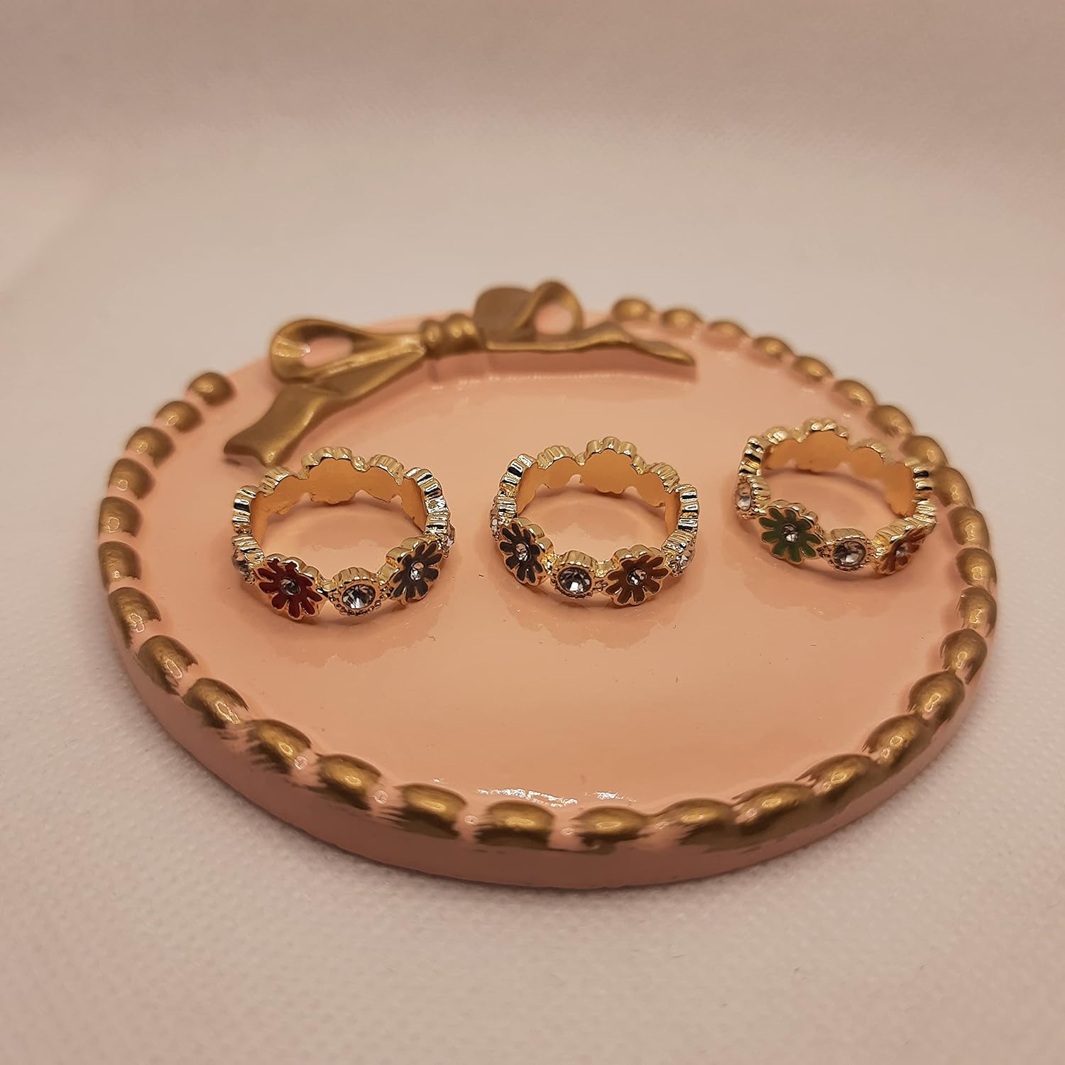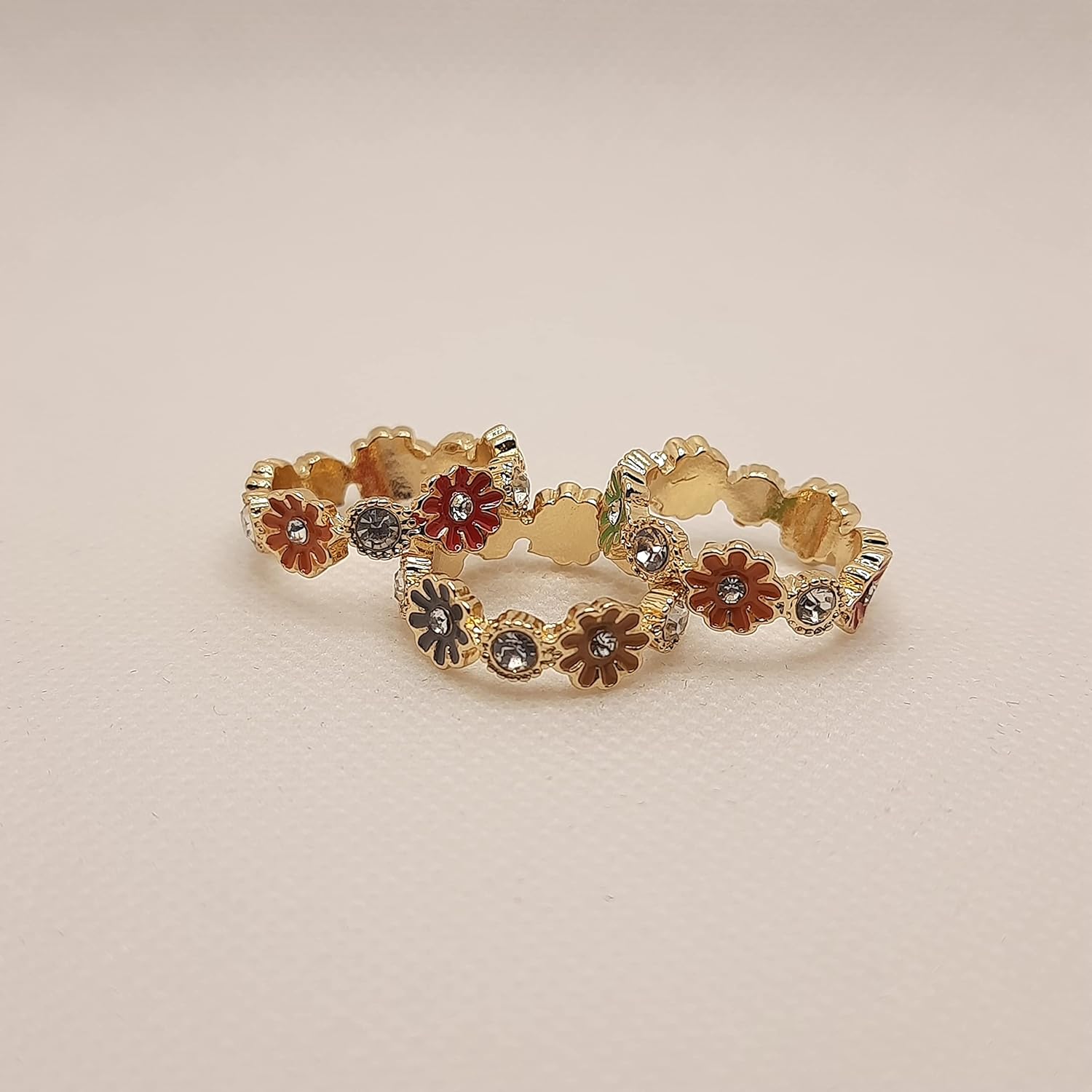 Color: Gold -Colorful Base Material: Metal - crystal - Other Where to wear: Ideal For Party, Office and Daily Wear, Beautifully Designed Rings Can Be Used On Birthday, Marriage, Engagement, Any Occasion. Care Instructions: Keep these away from water, perfume, soap, lotion etc. Avoid wearing while swimming, bathing etc. Keep it safe in pouch Rings for Women