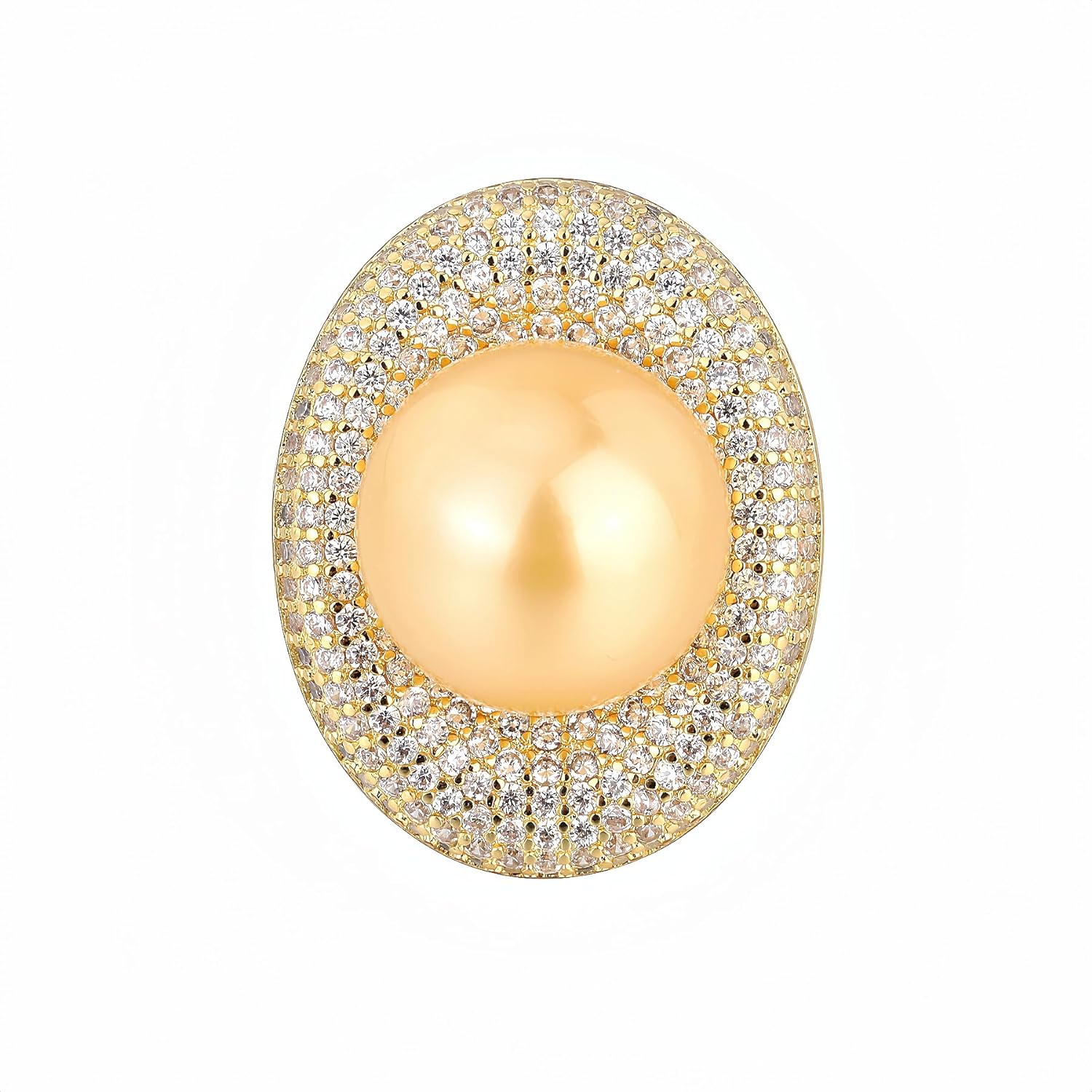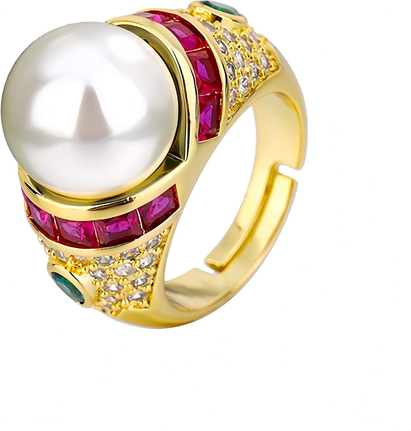 ONECIRCLE Fashion Cocktail Ring for Women, Adjustable Statement Ring with 18k Gold Plated, pearl ring and Cubic Zirconia Gemstone, Adjustable Size 7-11 (papa)