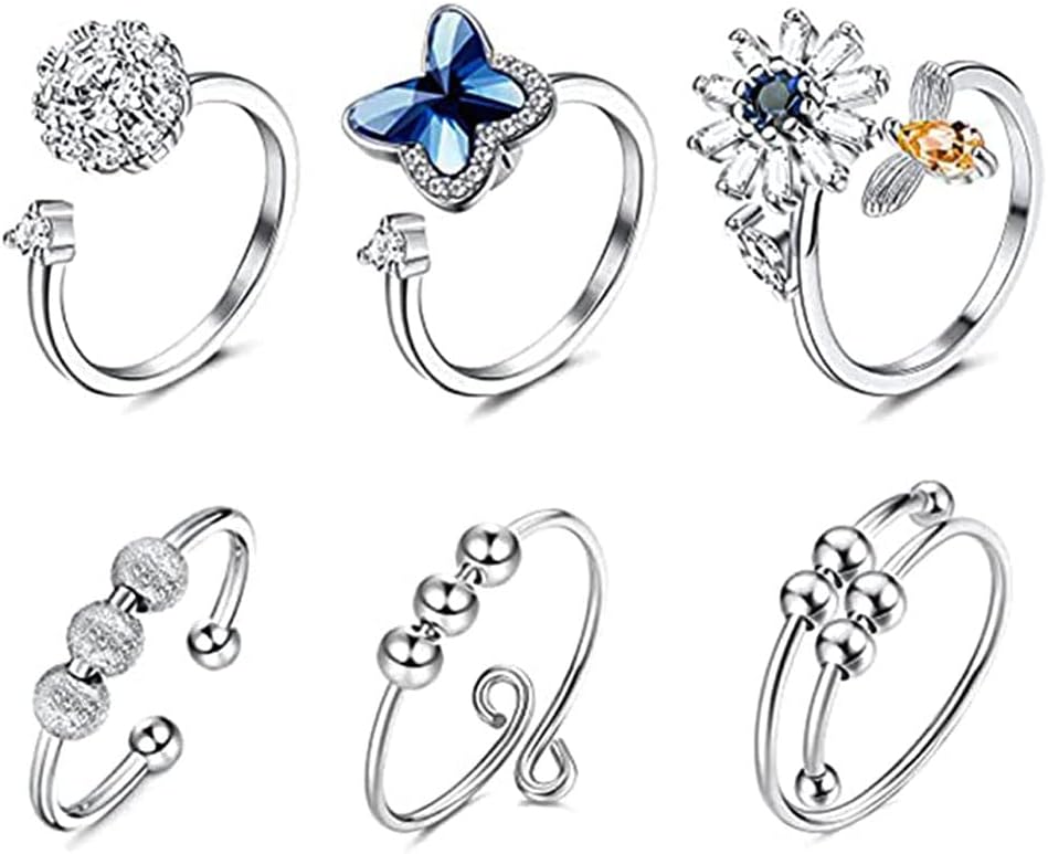 - Anxiety Ring for Women: Anxiety ring set contains 6 different styles of adjustable women rings: Cubic Zirconia, Flower Bee, Butterfly and Bead Ring for anxiety. You can wear them both as stackable rings.