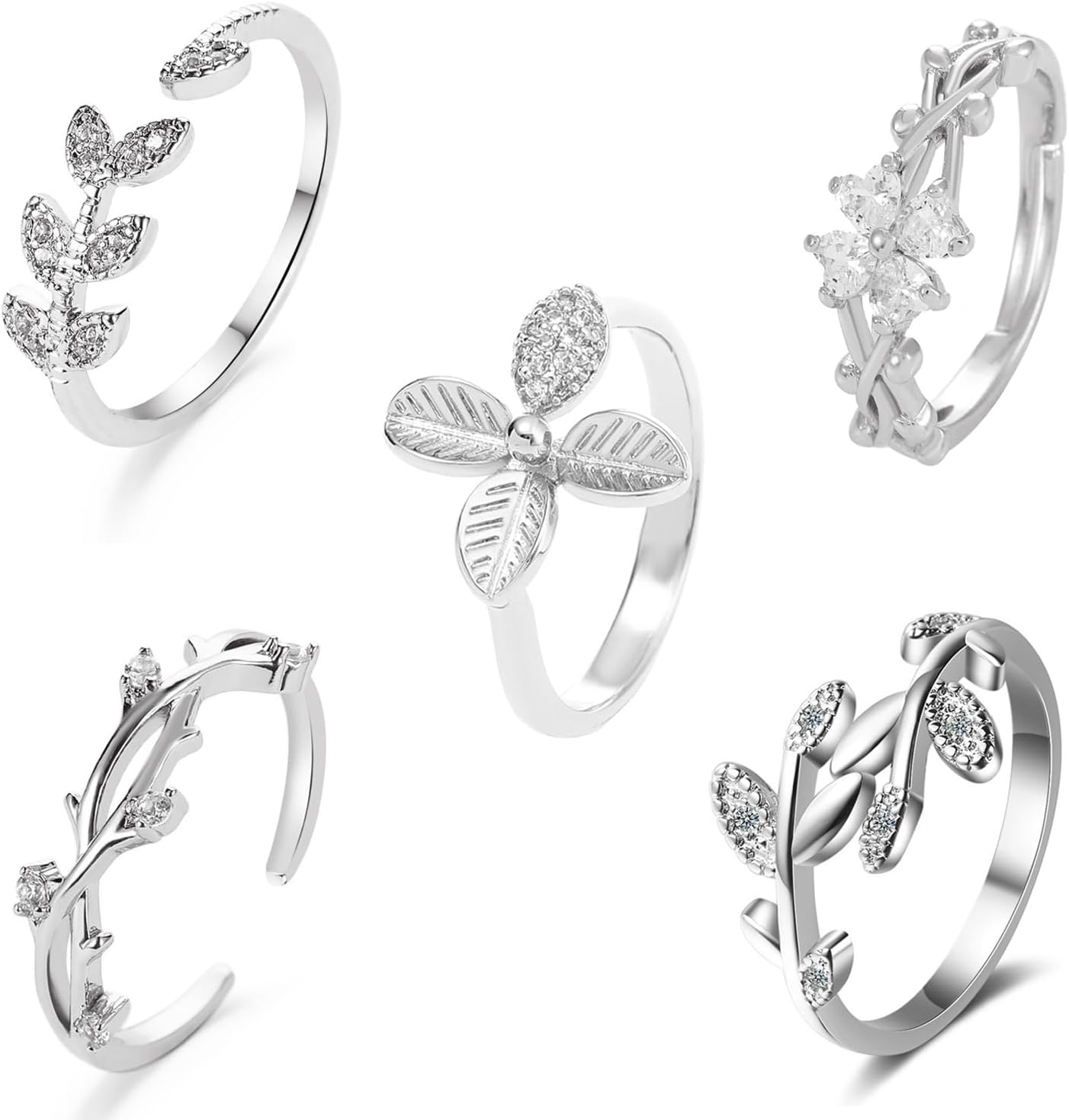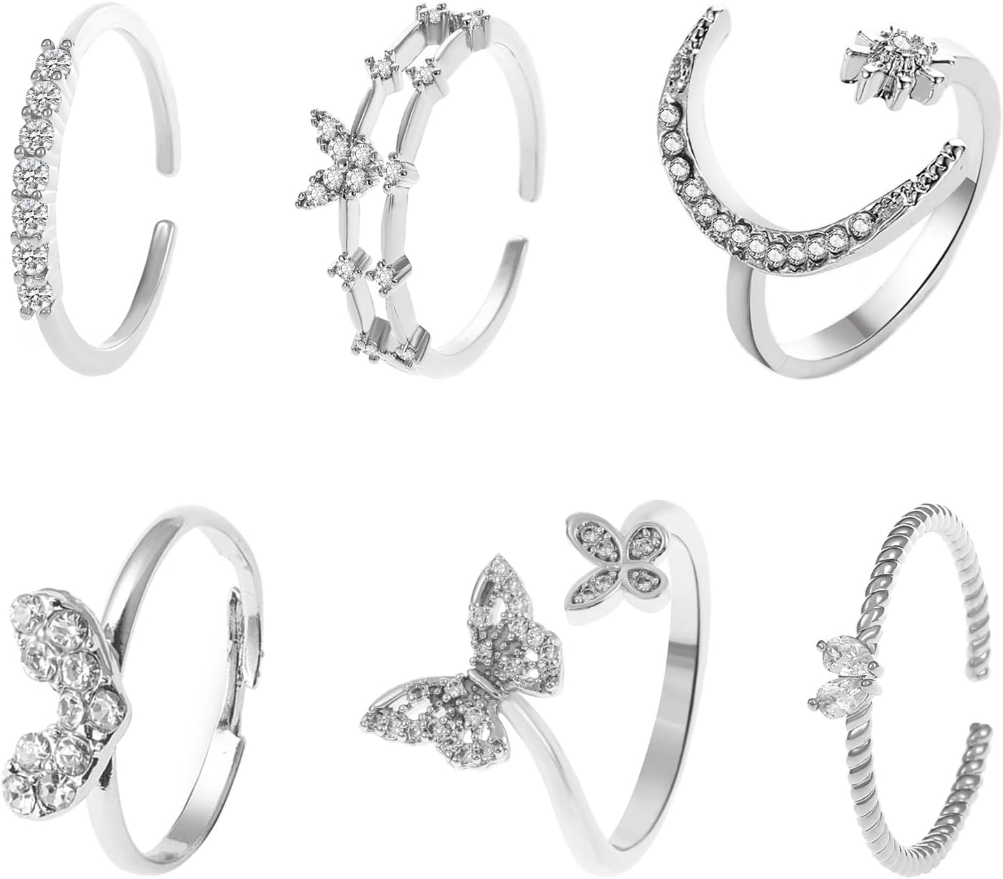 ORiTi Open Adjustable Rings Set 5-6pcs Unisex Stacking Ring Stackable Jewelry Gift Finger Rings Silver for Women Girls