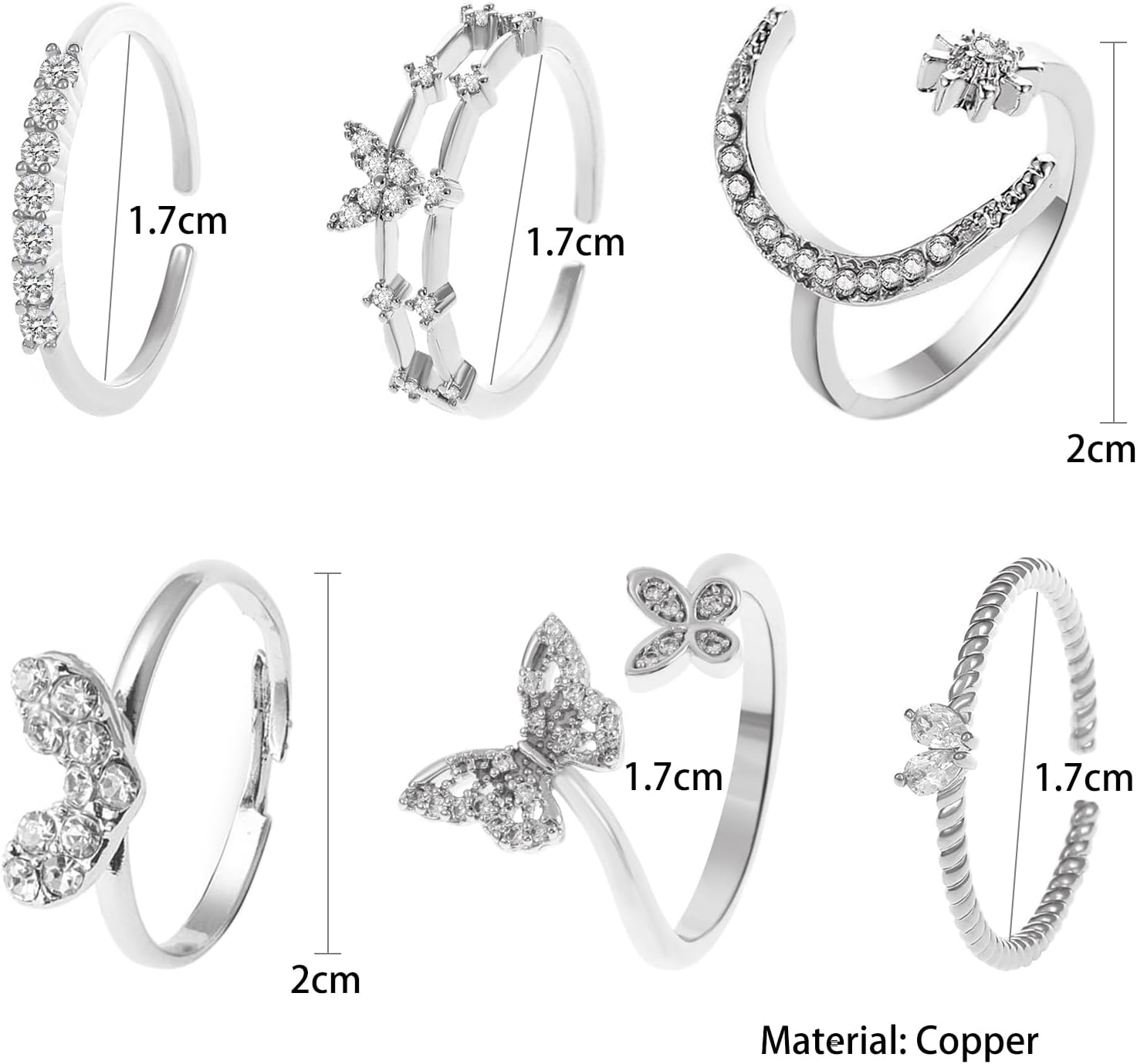 - Various Style: You will receive 6pcs Silver Rings in one ring set. Multiple types of cute rings provide you with different collocation choice every day, make you look cool and charm.