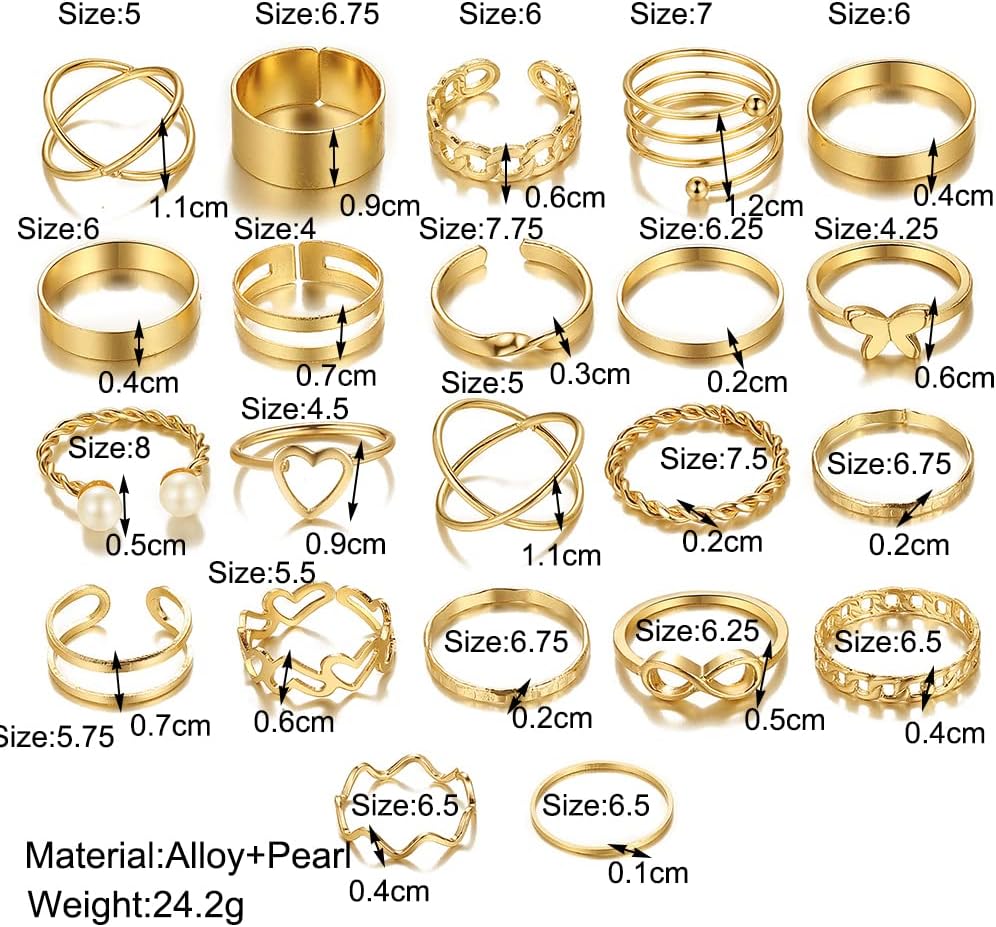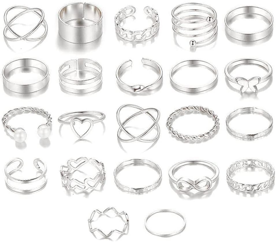 - Set of 22 Stylish Stackable Midi Finger Rings Set