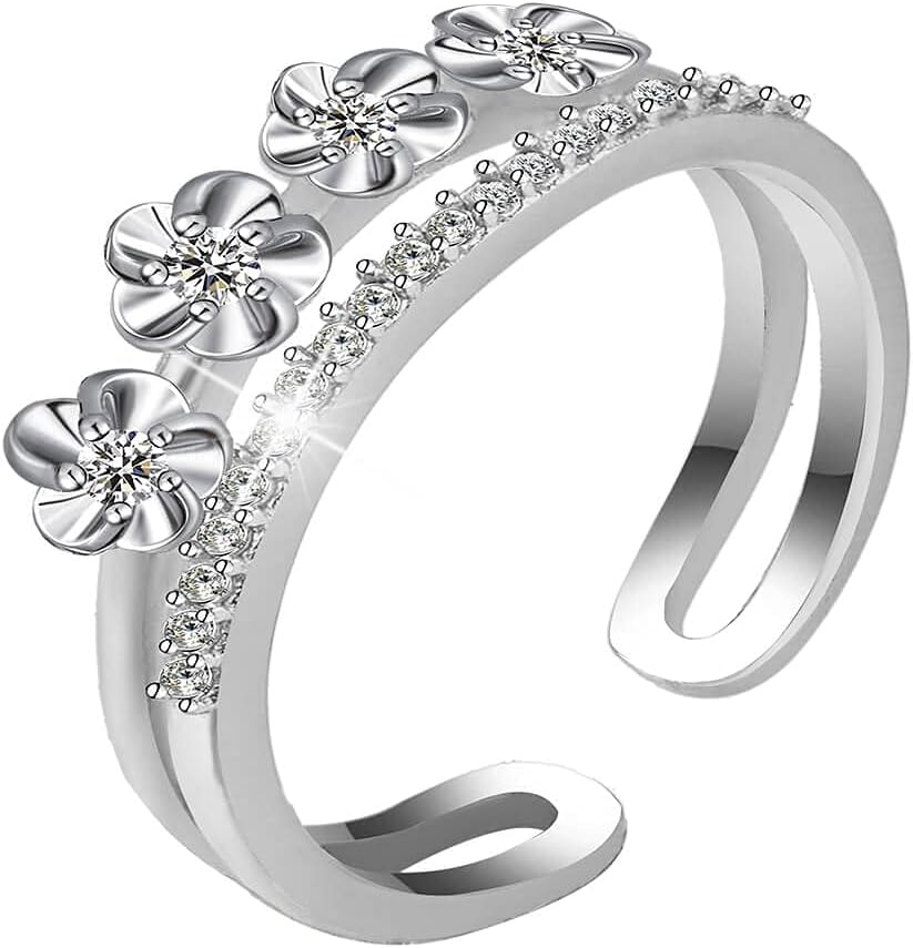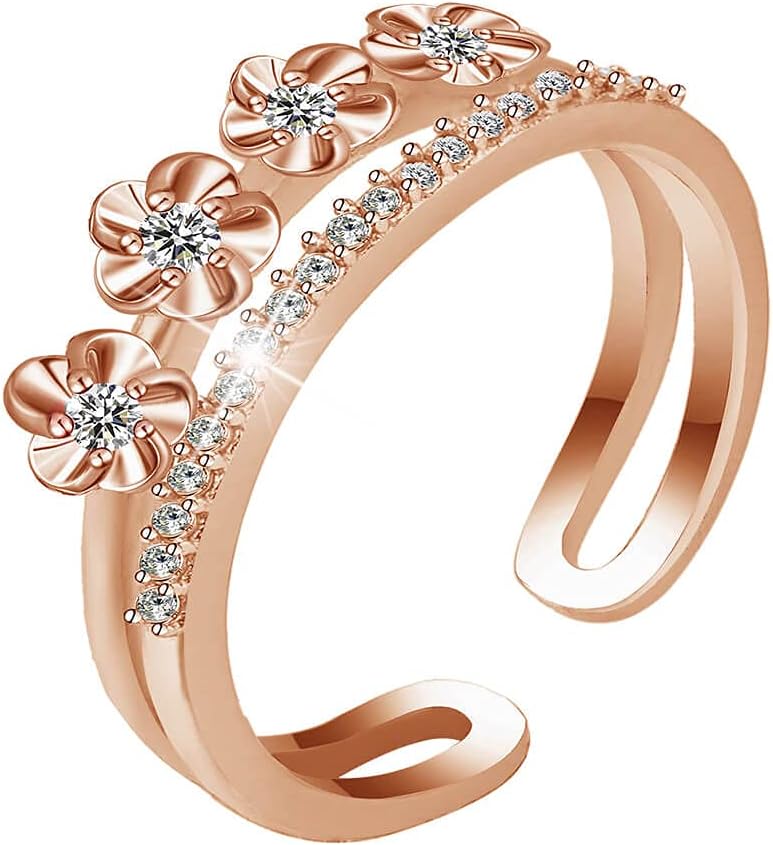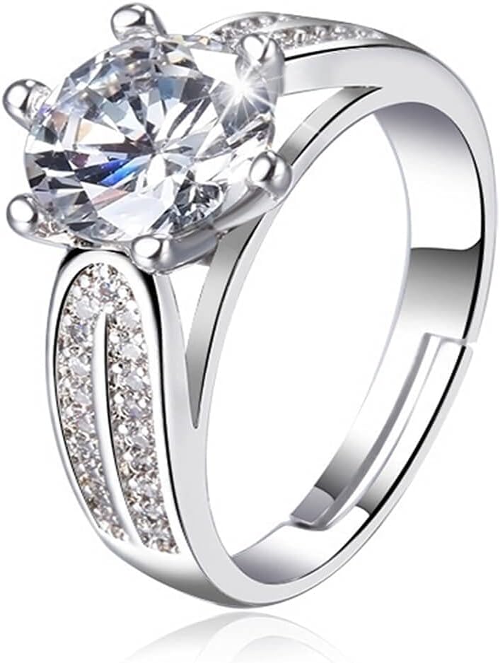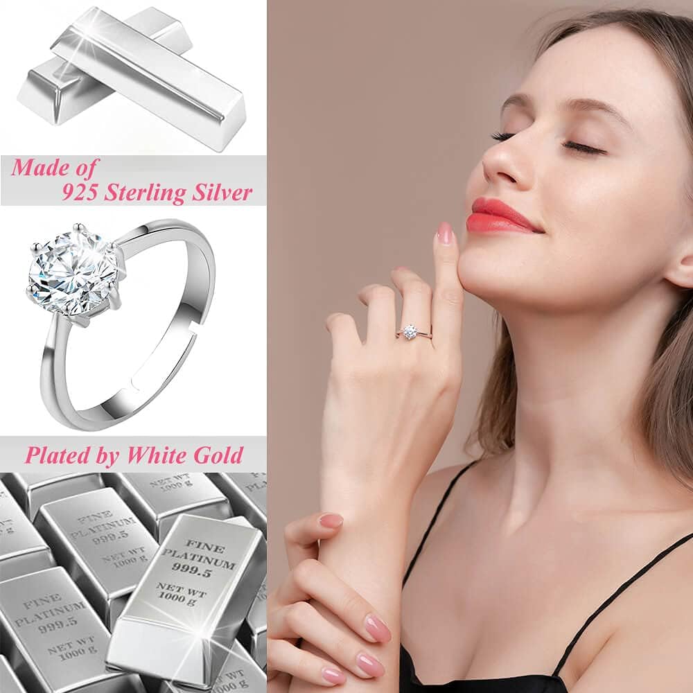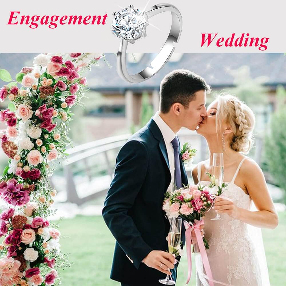 Swarovski Element Simulated Diamond Wedding Engagement ring Gold Plated 925 Sterling Silver Ring for Women Adjustable Size Open Ring