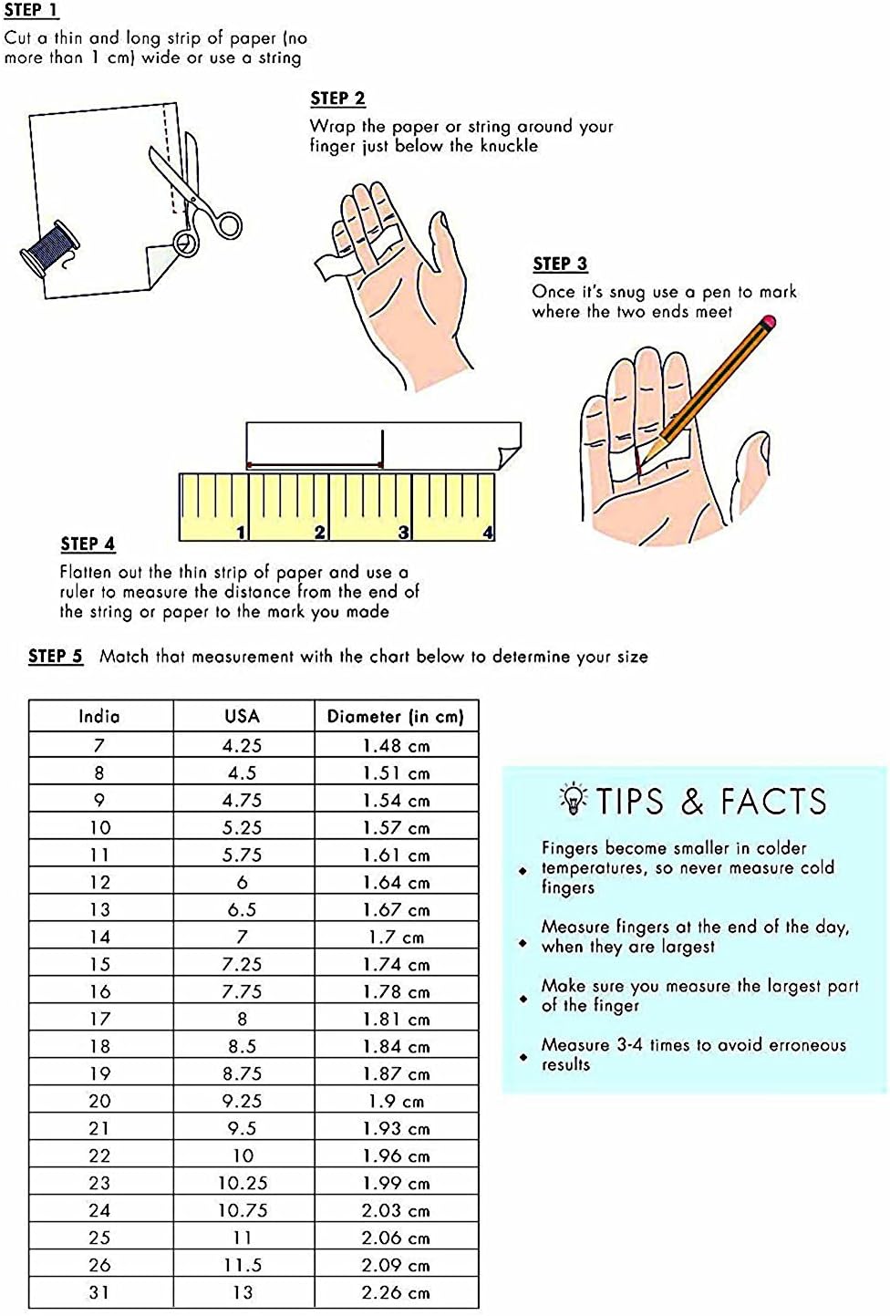 - The Ring shows its Unique Classic Designer style with shiny A5 Grade Crystal decor and Platinum plated workmanship- a Fashionable and Elegant timeless piece of Jewellery for your Unique Collection. Size- Ring Size is US 7, which has inner Diameter of 1.73 CM.