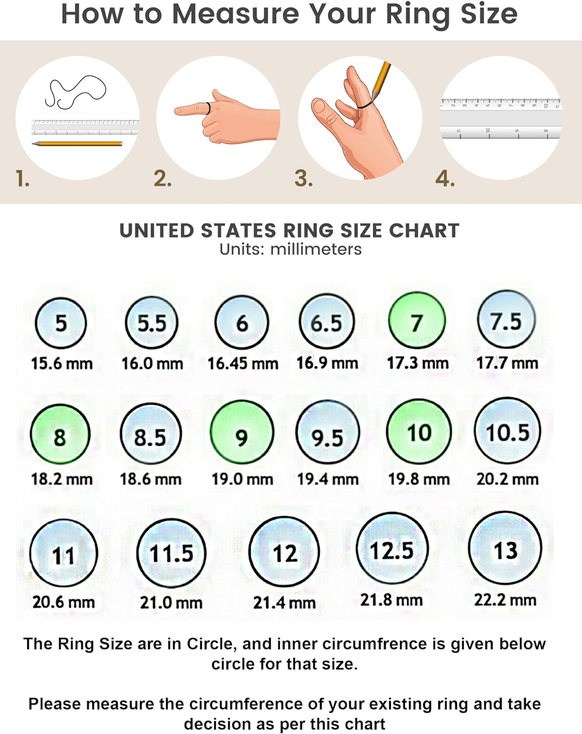 - Ring Size is US 7, which is around 1.74 CM in Diameter.